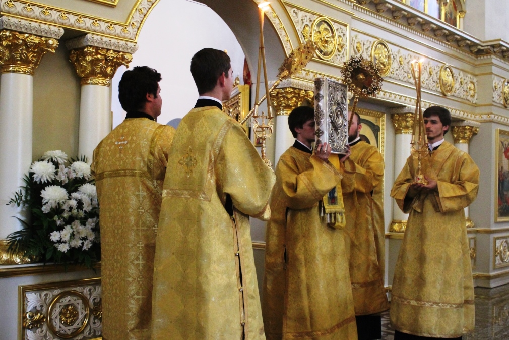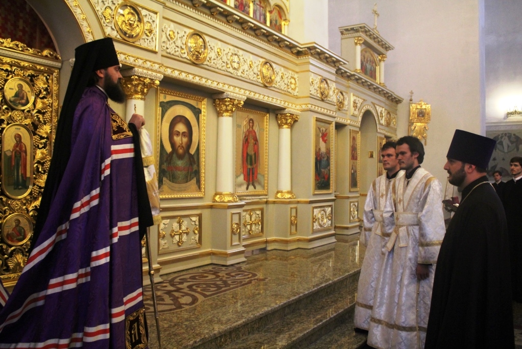 Перед чтением первого часа Архиепископ Феофилакт совершил чин поставления во чтецов выпускников Ставропольской духовной семинарии 2014 года Василия и Георгия Ивакиных. По окончании богослужения архипастырь обратился к верующим с поучением старца Силуана Афонского о покаянии. Владыка тепло поздравил новопостриженных чтецов с хиротесией и пожелал помощи Божией в дальнейшем несении послушаний.