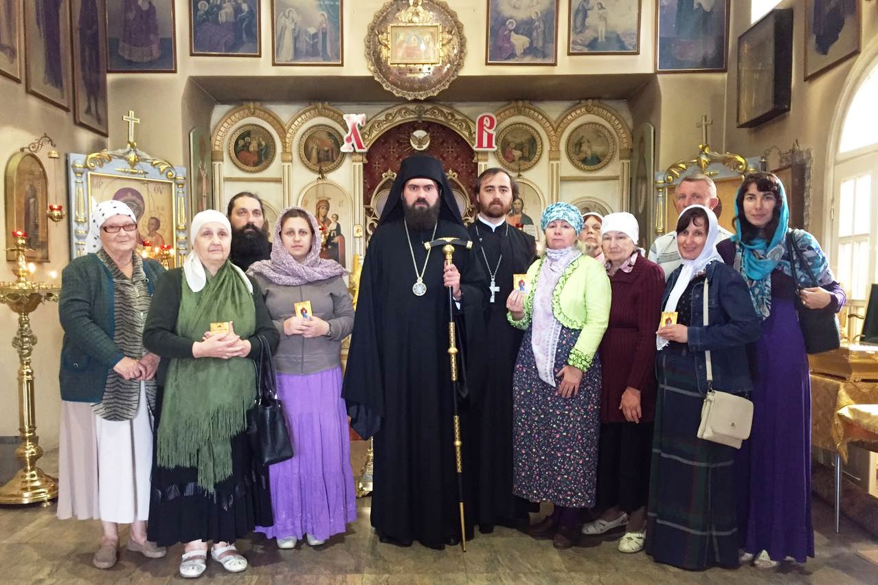Всем паломникам в благословение Владыка передал иконки с изображением Афонской иконы Божией Матери Паломников пригласили на трапезу и провели экскурсию по обители.