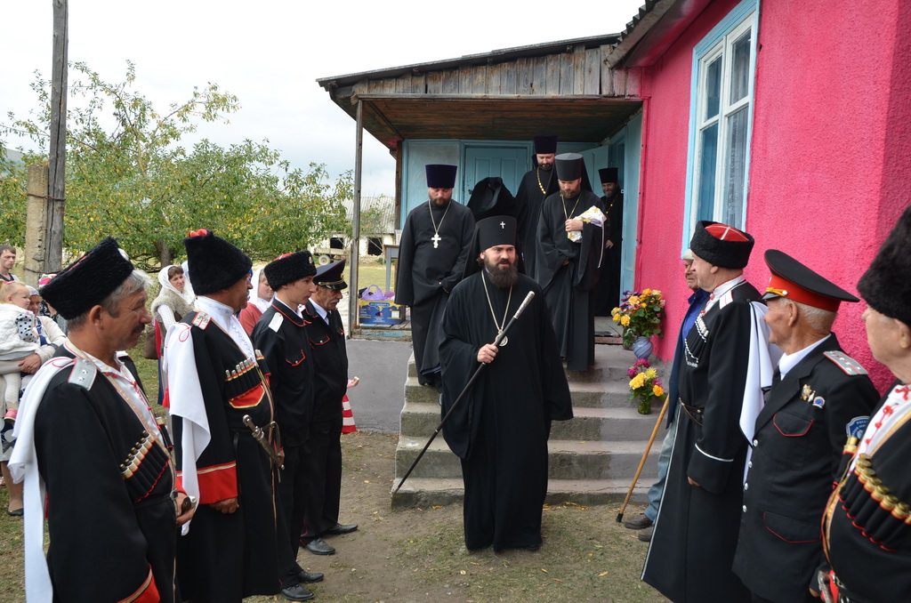 Перед началом Богослужения хуторяне торжественно внесли в молитвенный дом единственную оставшуюся от разрушенного храма святыню — икону Архистратига Божия Михаила, которая все эти годы хранилась разными людьми. У входа в храм Владыку встречали атаман Исправненского станичного общества Петр Полянский с казаками Зеленчукского районного общества, и глава Исправненского муниципалитета Марина Брыкина. По окончании литургии был совершен Крестный ход.
