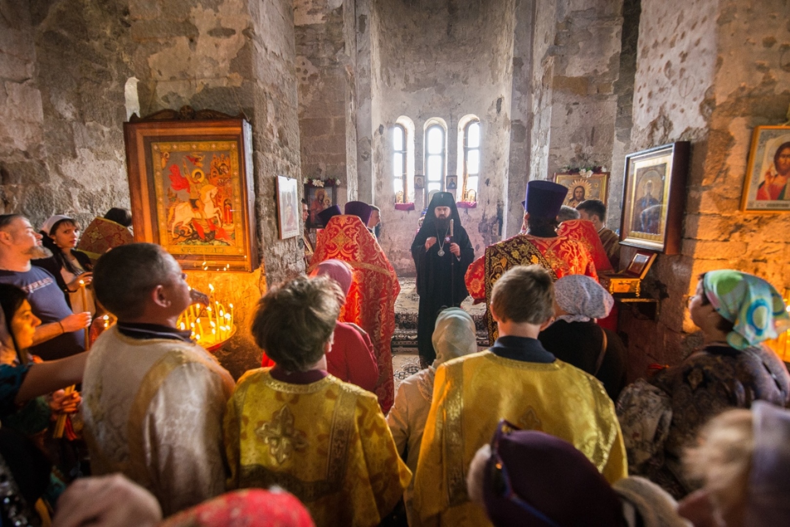 Традиция соборной молитвы во главе с Архиереем в престольный праздник древнего Георгиевского храма на горе Шоане установилась после возрождения Пятигорской епархии.