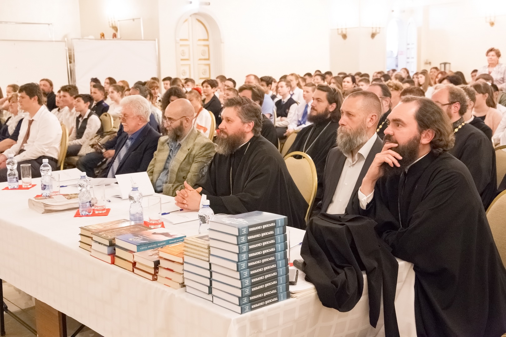 Конференция началась мини-спектаклем на тему церковно-славянского языка и образования, которую показали учащиеся 16-й школы Пятигорска.