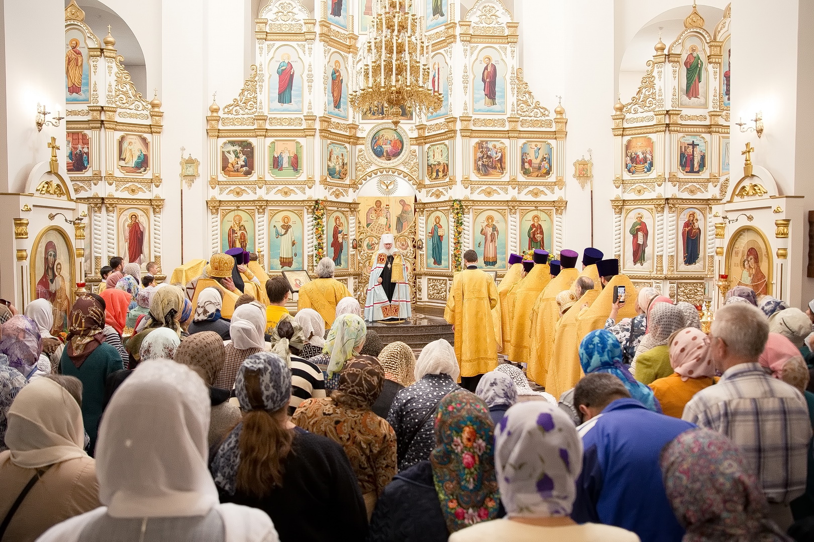 Перед началом богослужения в храм торжественно принесли ковчег с частицей святых мощей мучениц Веры, Надежды и Любови.