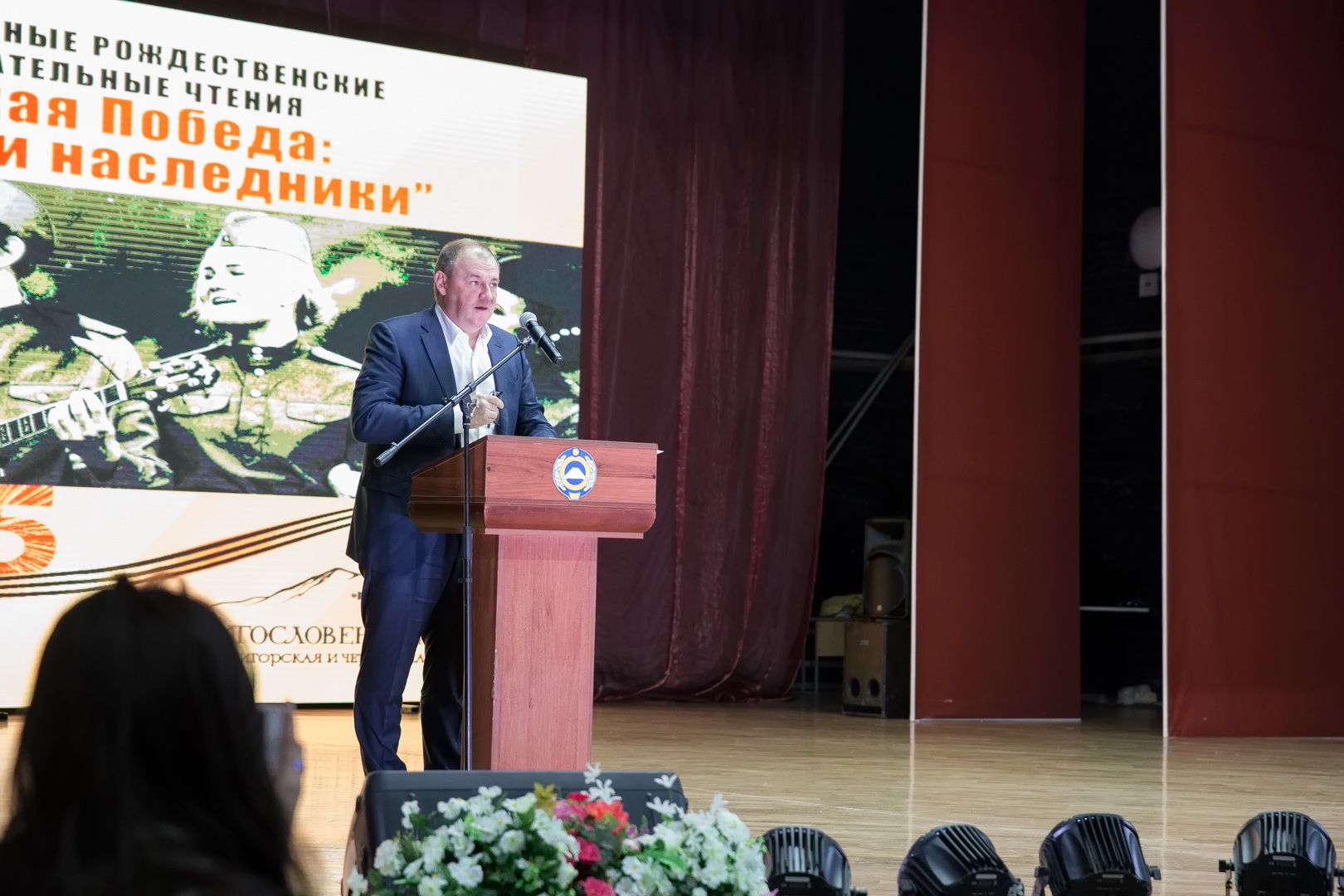 Открыл чтения архиепископ Пятигорский и Черкесский Феофилакт. Архипастырь поделился с аудиторией размышлениями о теме чтений: «Великая Победа: наследие и наследники», которая едина с темой предстоящих международных чтений в Москве: