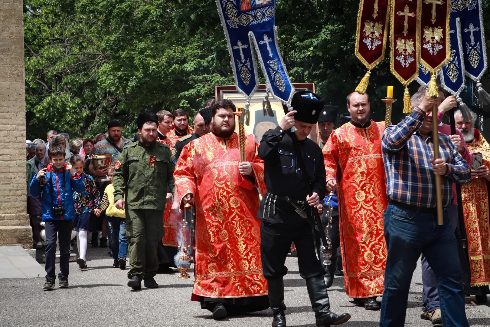 На площади у Смирновского бювета духовенство совершило водосвятный молебен. С горожанами и гостями помолился глава города Евгений Моисеев. После богослужения Евгений Иванович поздравил участников крестного хода с открытием курортного сезона. Отец благочинный вручил мэру Архиерейскую грамоту архиепископа Пятигорского и Черкесского Феофилакта.