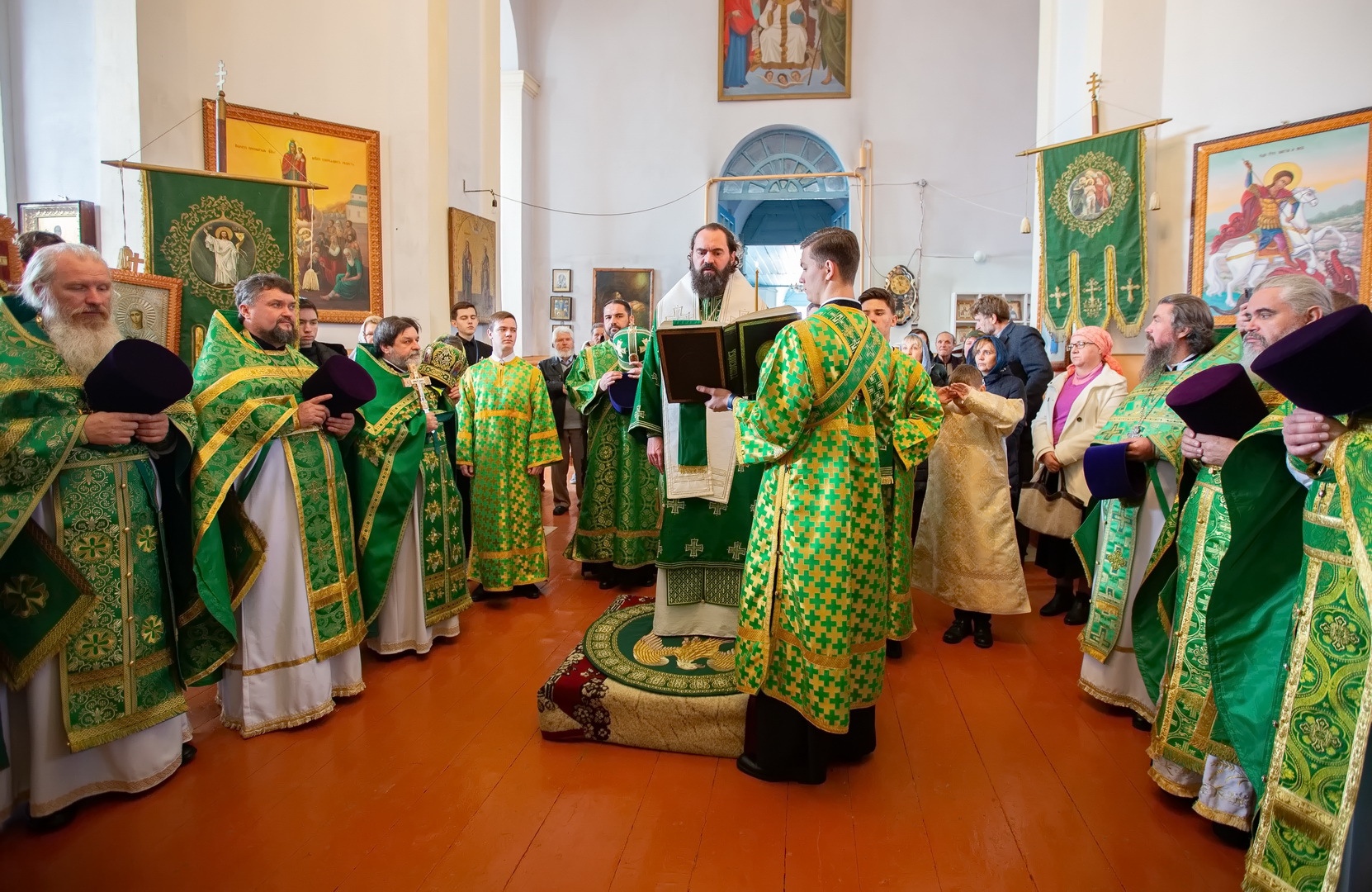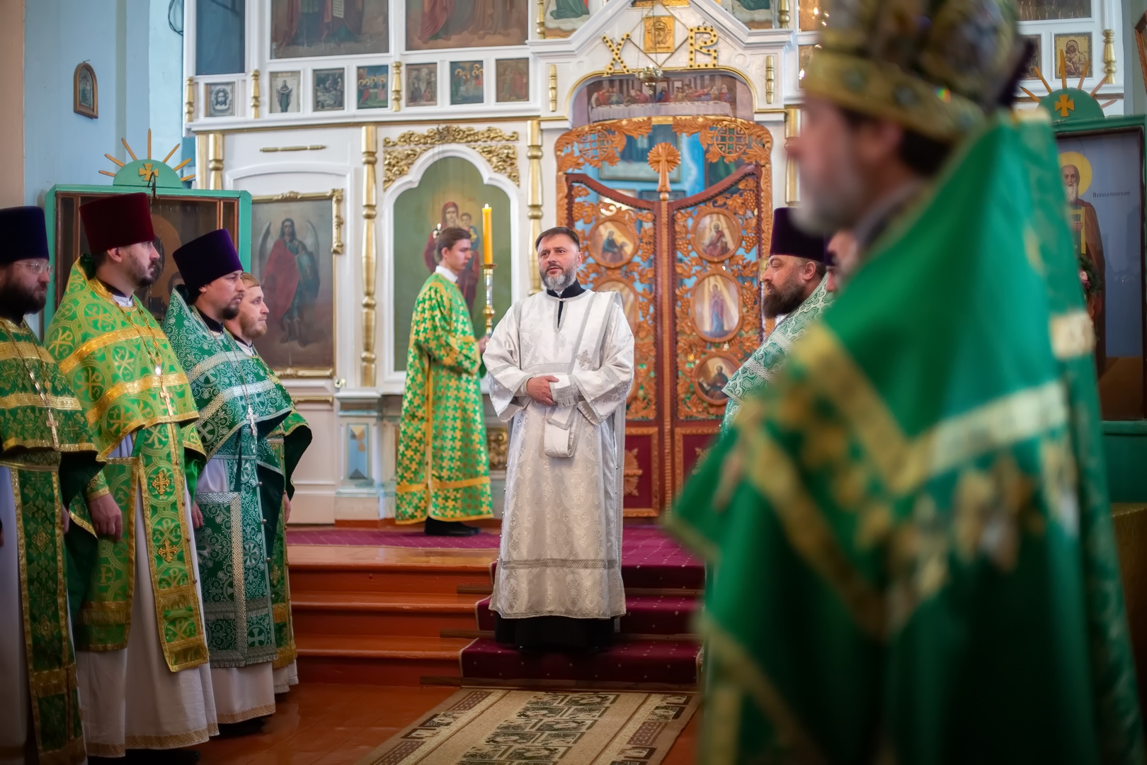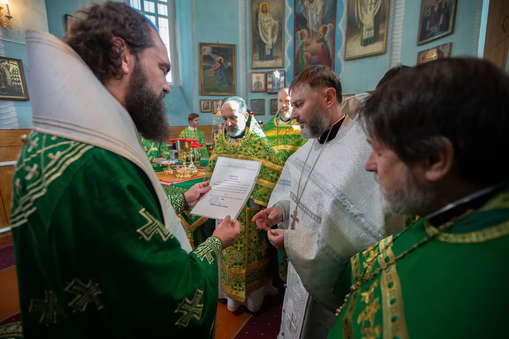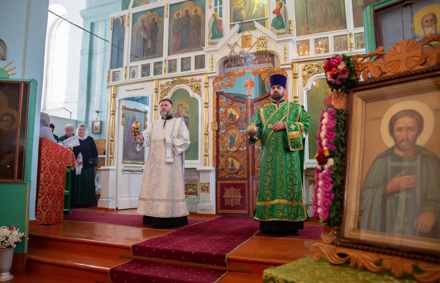 За богослужением архиепископ Феофилакт совершил иерейскую хиротонию диакона Сергия Сорокина. После литургии Владыка возглавил крестный ход, совершил славление небесному покровителю храма и обратился к верующим с проповедью.