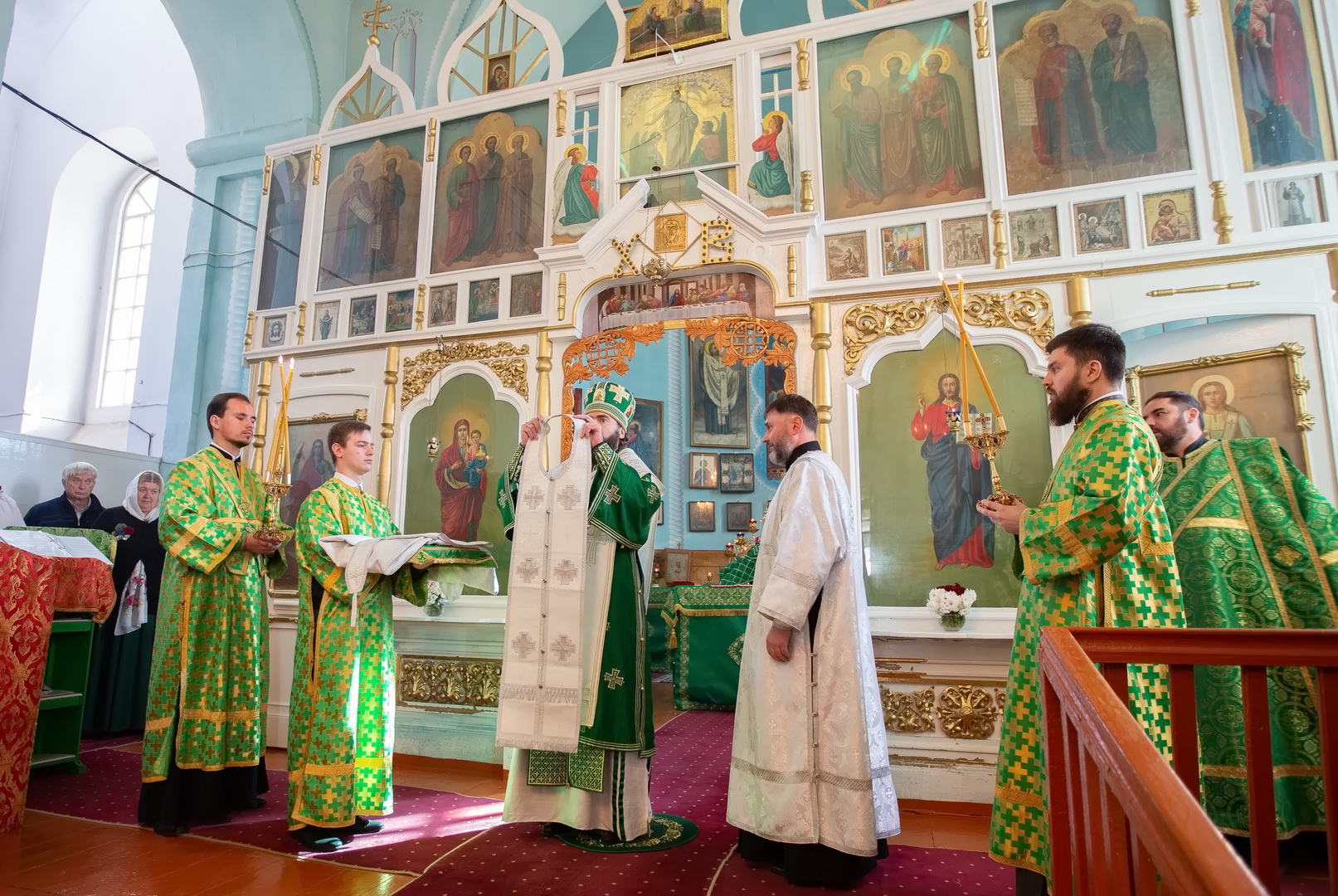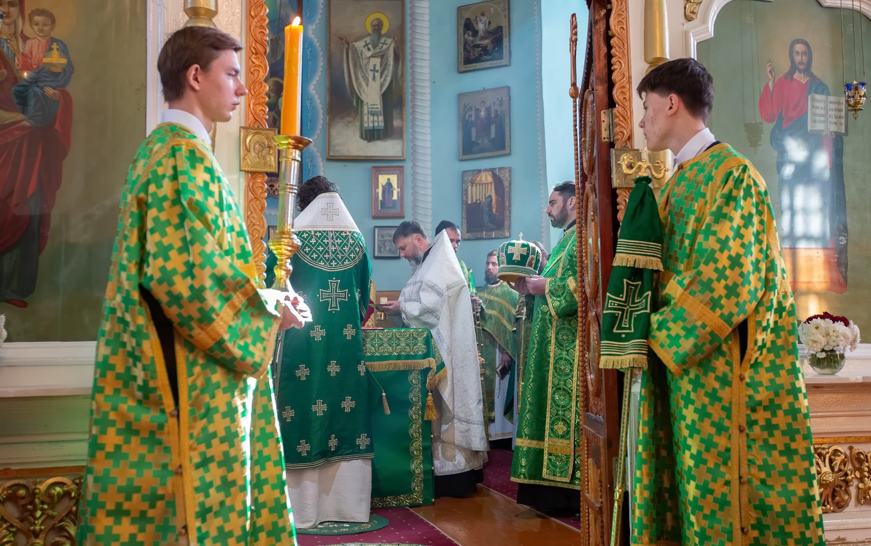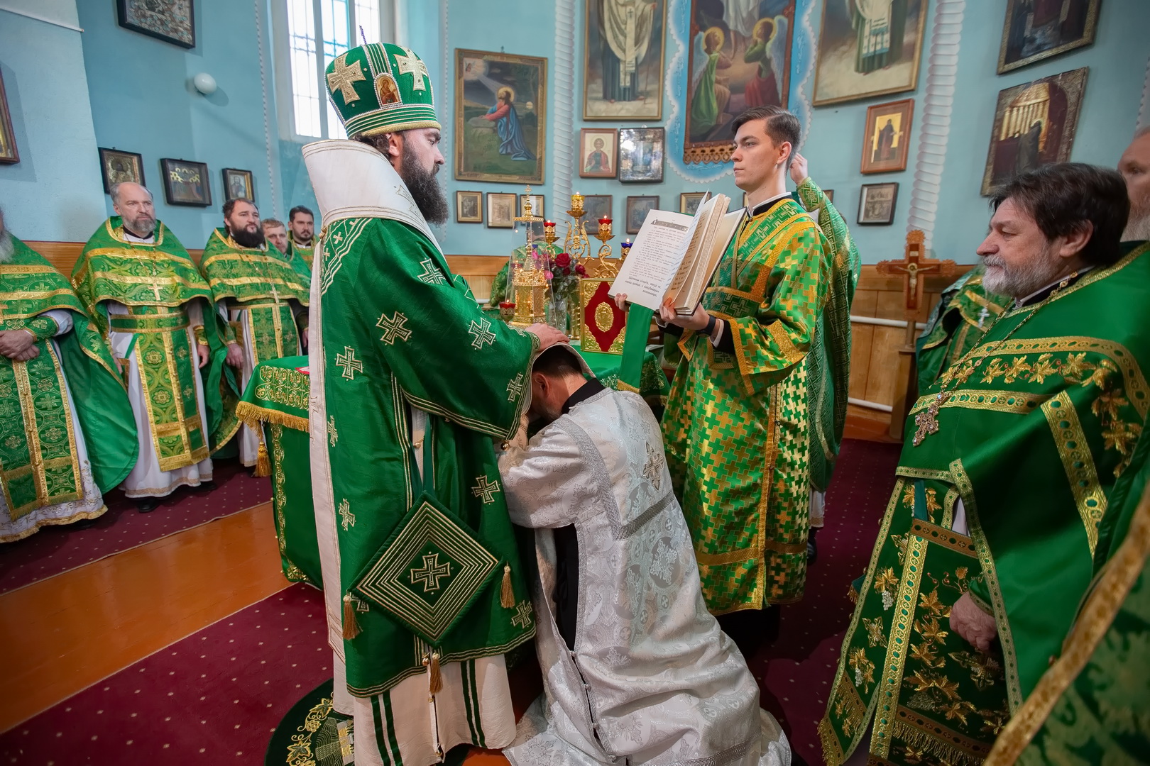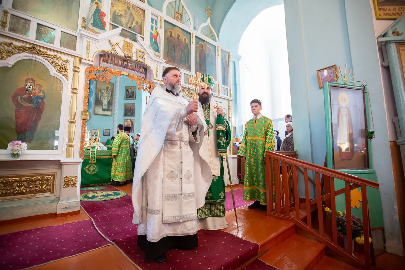 За богослужением архиепископ Феофилакт совершил иерейскую хиротонию диакона Сергия Сорокина. После литургии Владыка возглавил крестный ход, совершил славление небесному покровителю храма и обратился к верующим с проповедью.