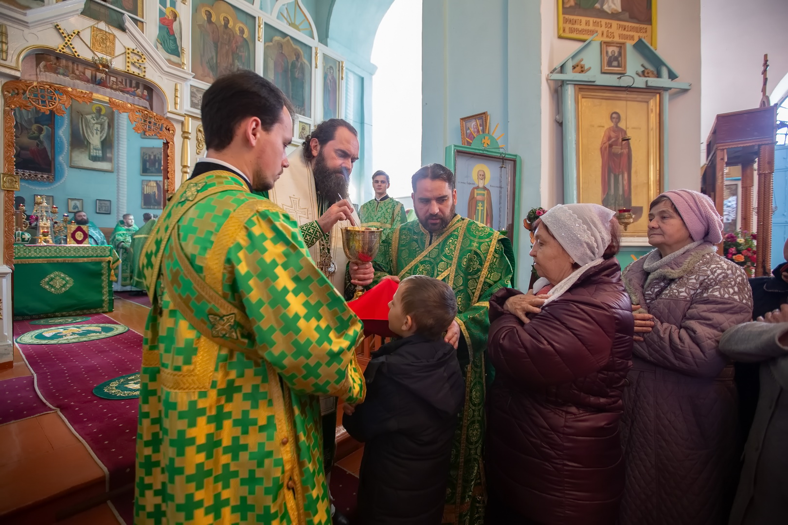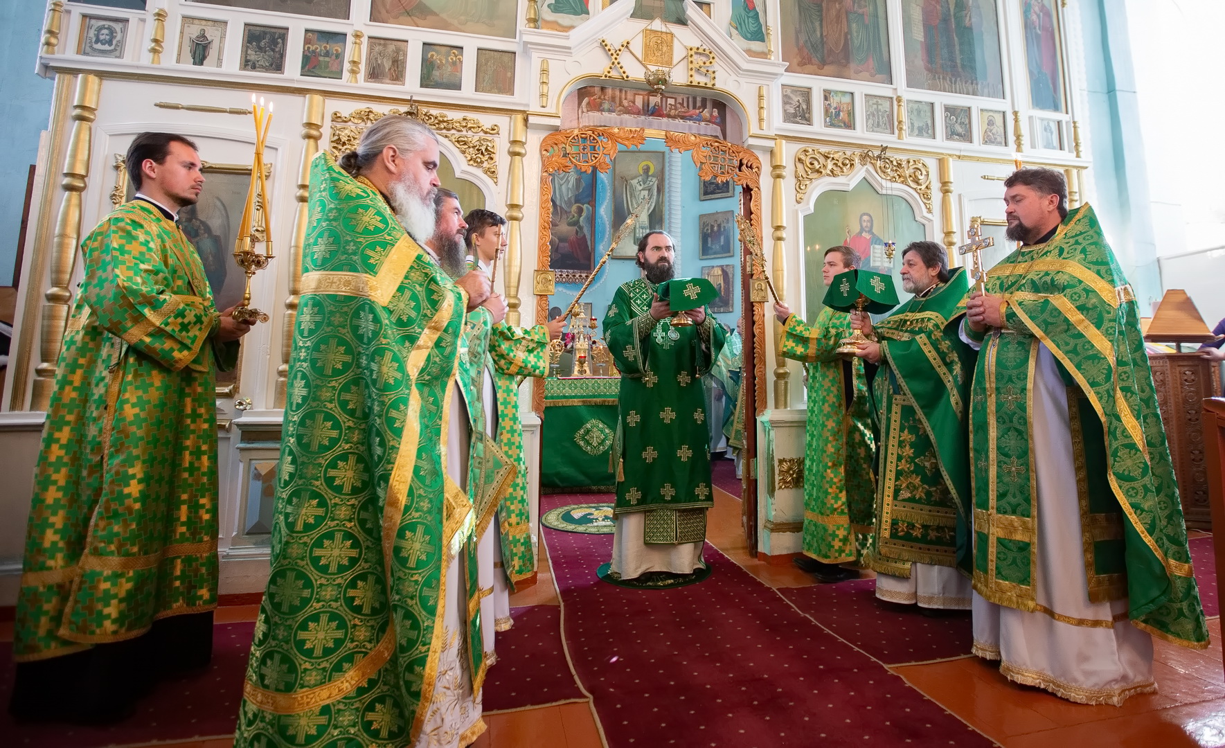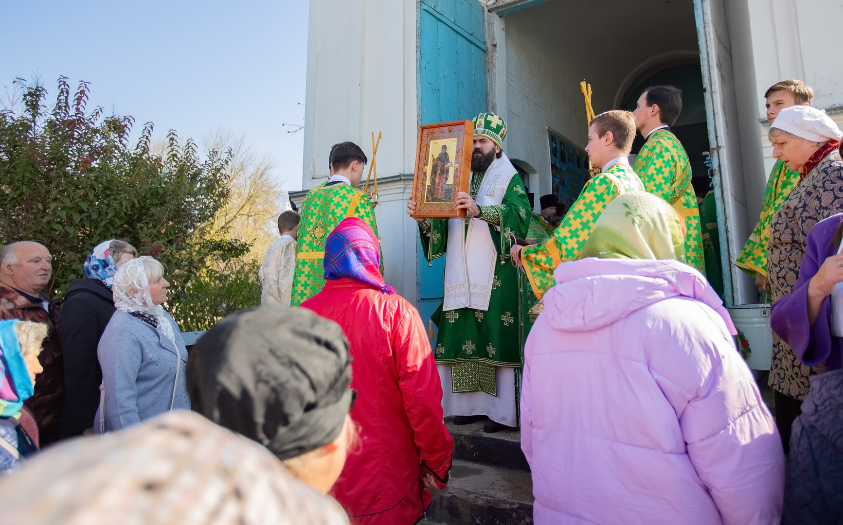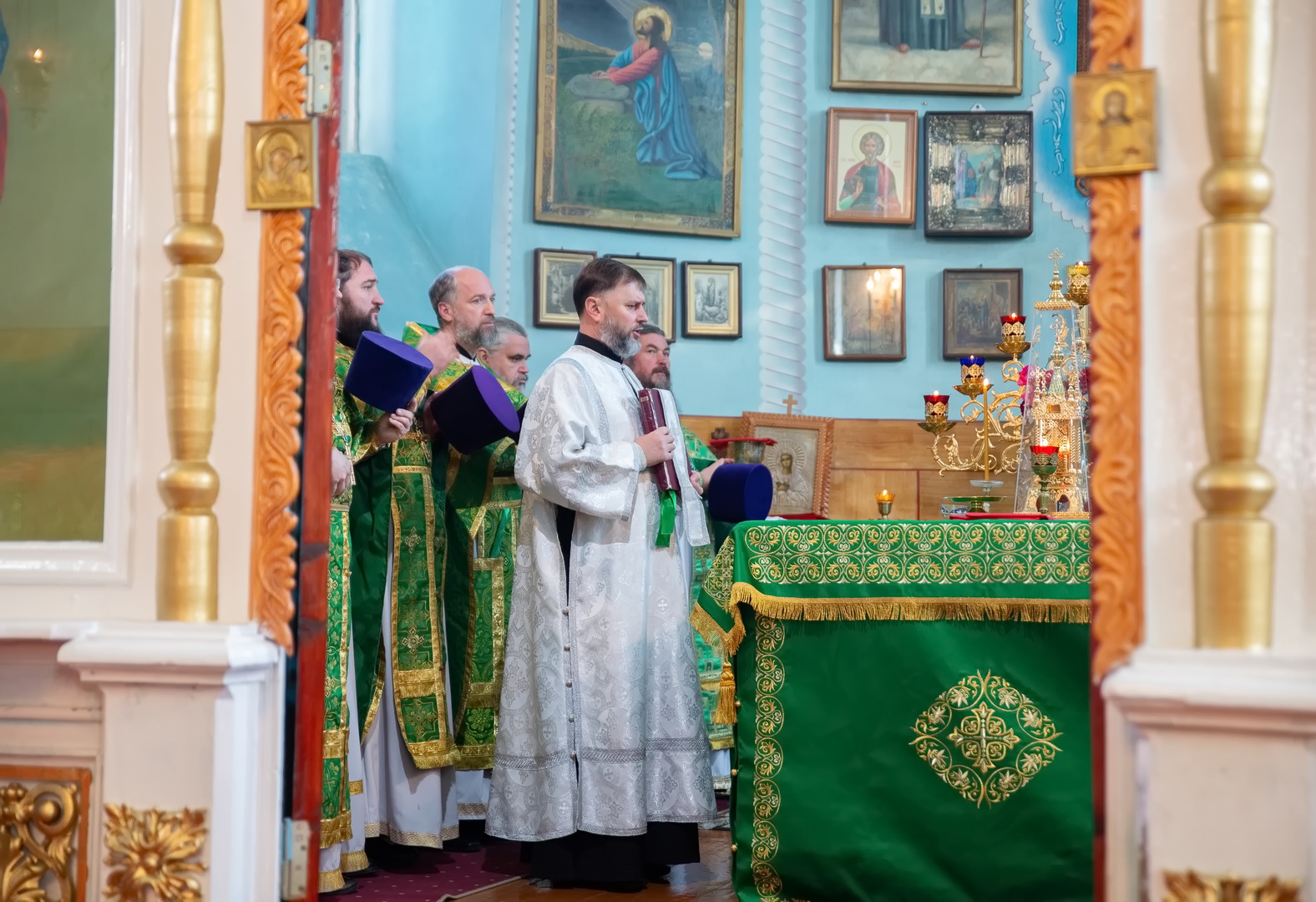 За богослужением архиепископ Феофилакт совершил иерейскую хиротонию диакона Сергия Сорокина. После литургии Владыка возглавил крестный ход, совершил славление небесному покровителю храма и обратился к верующим с проповедью.