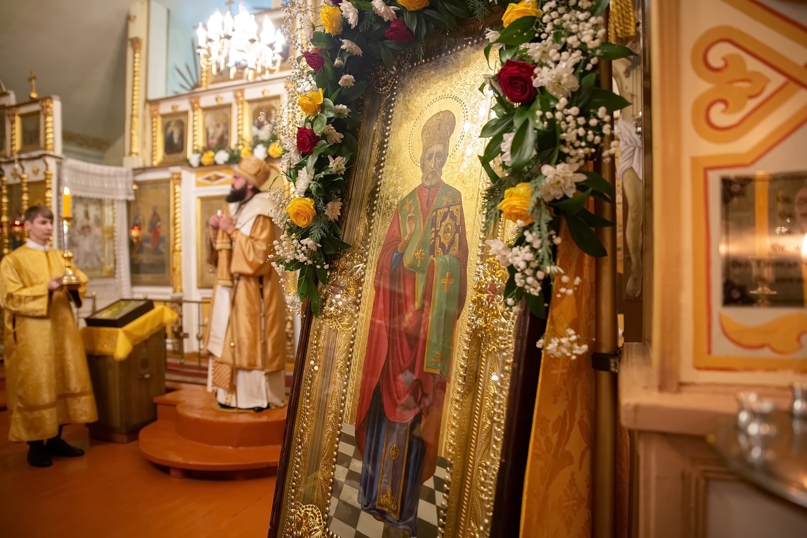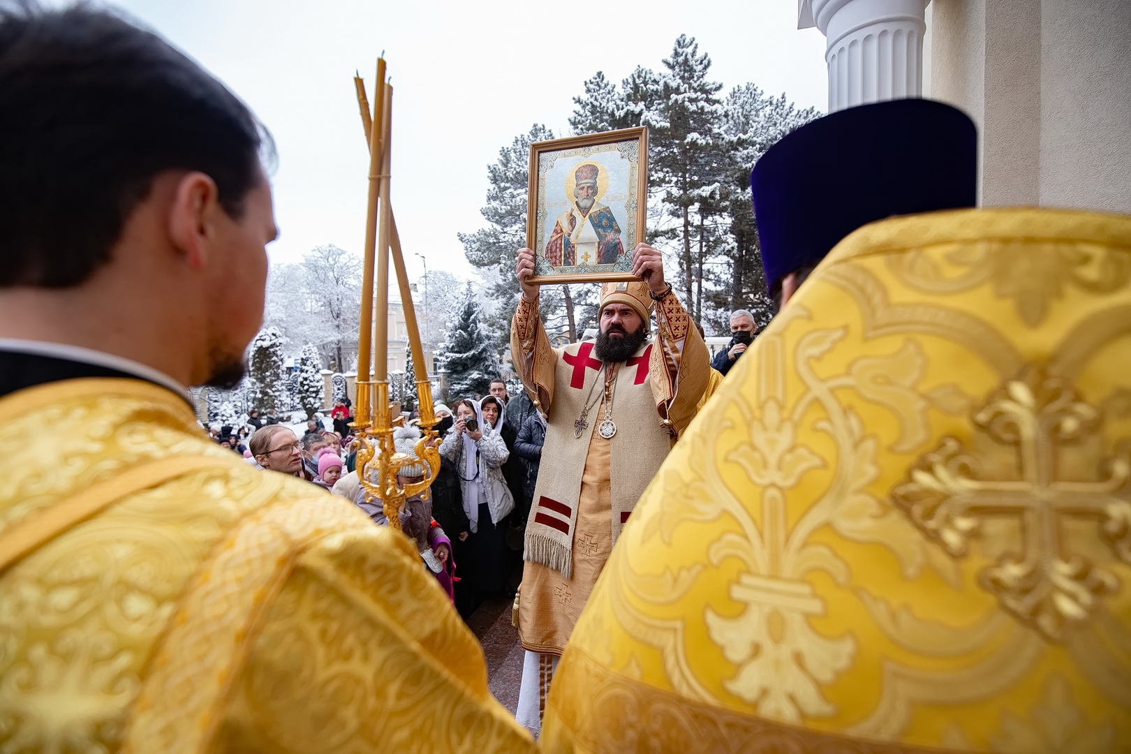 18 декабря 2021 года, накануне дня памяти святителя Николая архиепископ Пятигорский и Черкесский Феофилакт возглавил всенощное бдение в Никольском храме города Минеральные Воды. Архиерею сослужили руководитель Административного секретариата Пятигорской епархии иерей Илия Яковенко, духовенство Минераловодского церковного округа во главе с благочинным протоиереем Алексием Панасенко и протодиакон Димитрий Куба. С Архипастырем помолились казаки и жители города. Владыка прочитал Евангелие и обратился к участникам богослужения со словом поздравления.