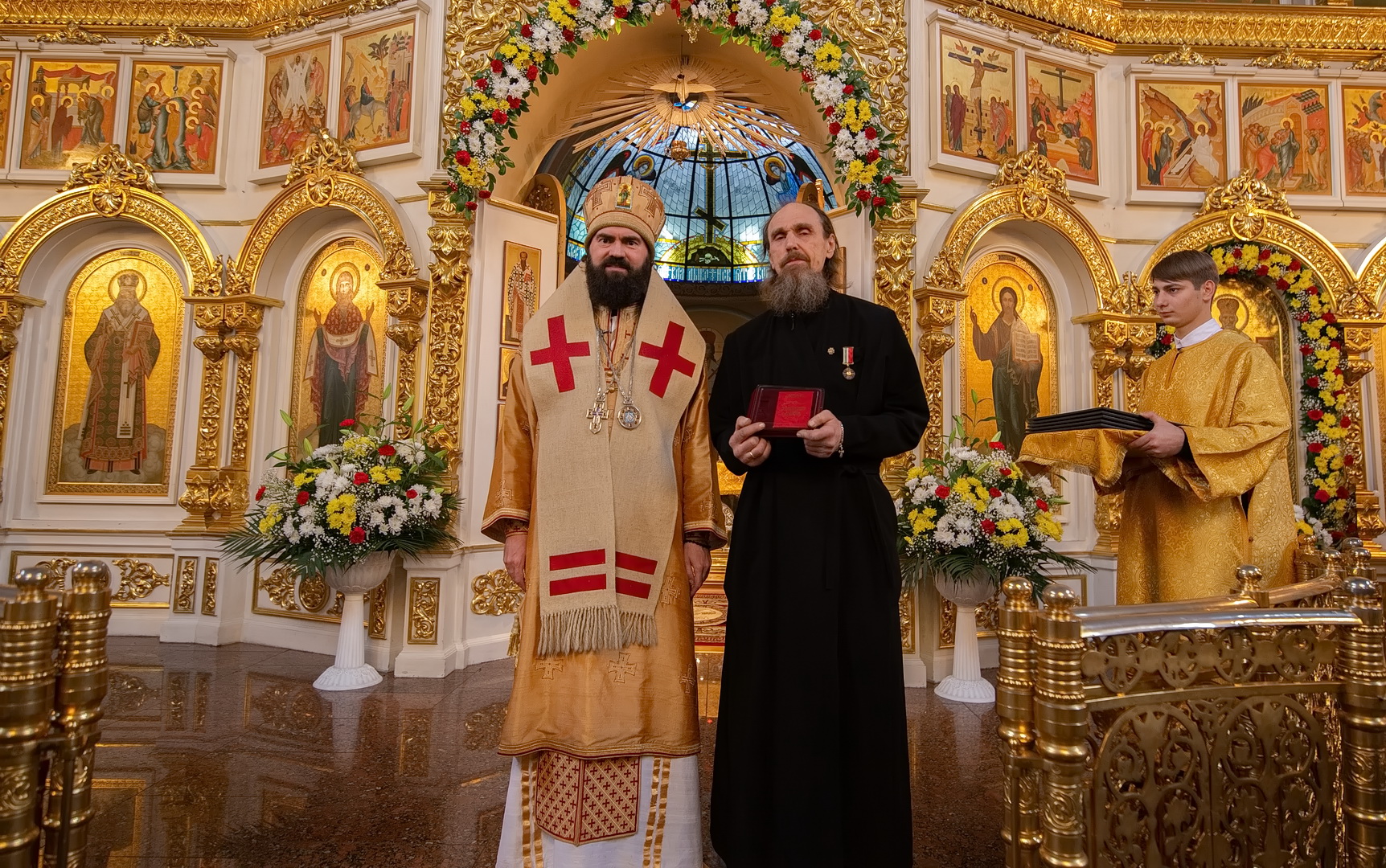 На праздник собрались гимназисты, казаки, жители города и гости курорта. После чтения Священного Писания Владыка обратился к верующим с проповедью. За богослужением архиепископ Феофилакт совершил священническую хиротонию диакона Михаила Вдовина. После крестного хода и славления небесному покровителю храма Архипастырь вручил медали Пятигорской епархии и Архиерейские грамоты сотрудникам собора. Архиерей тепло поблагодарил настоятеля храма протоиерея Иоанна Знаменского и в его лице поздравил тружеников и прихожан собора со знаменательным юбилеем.