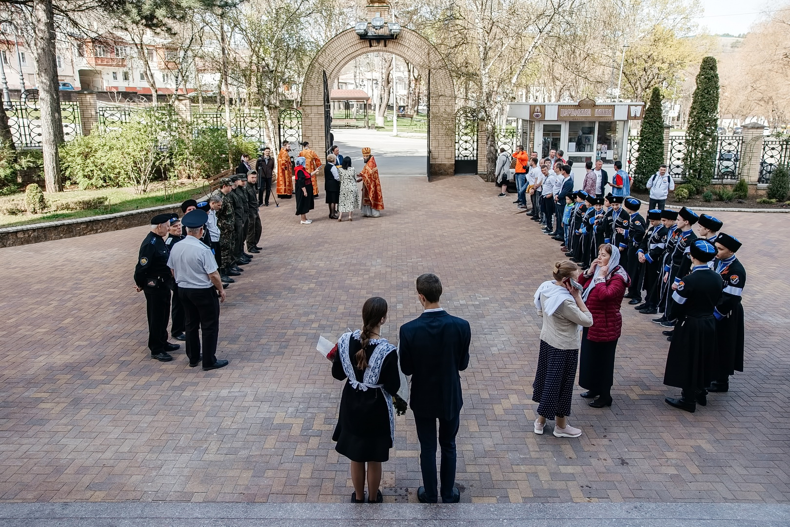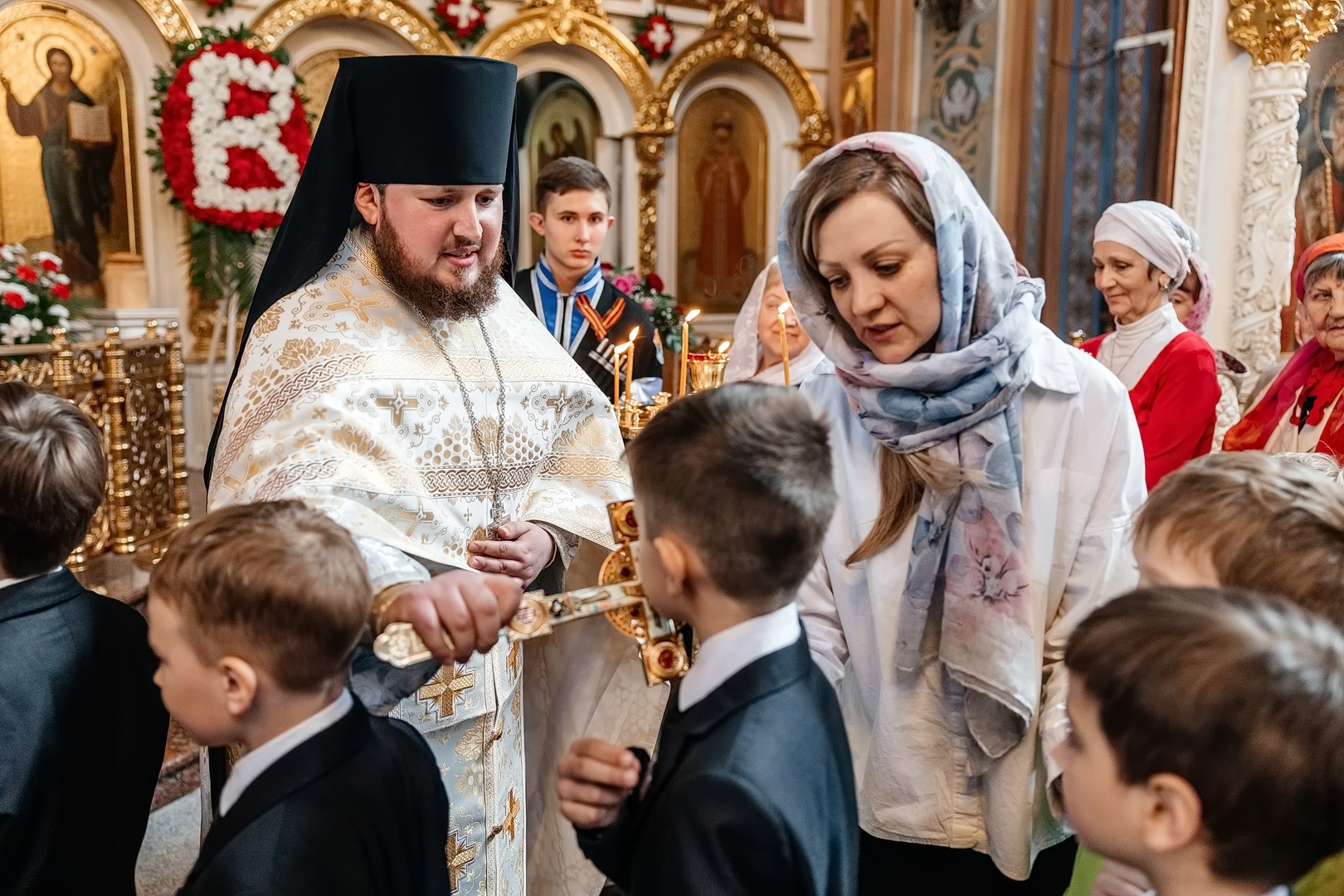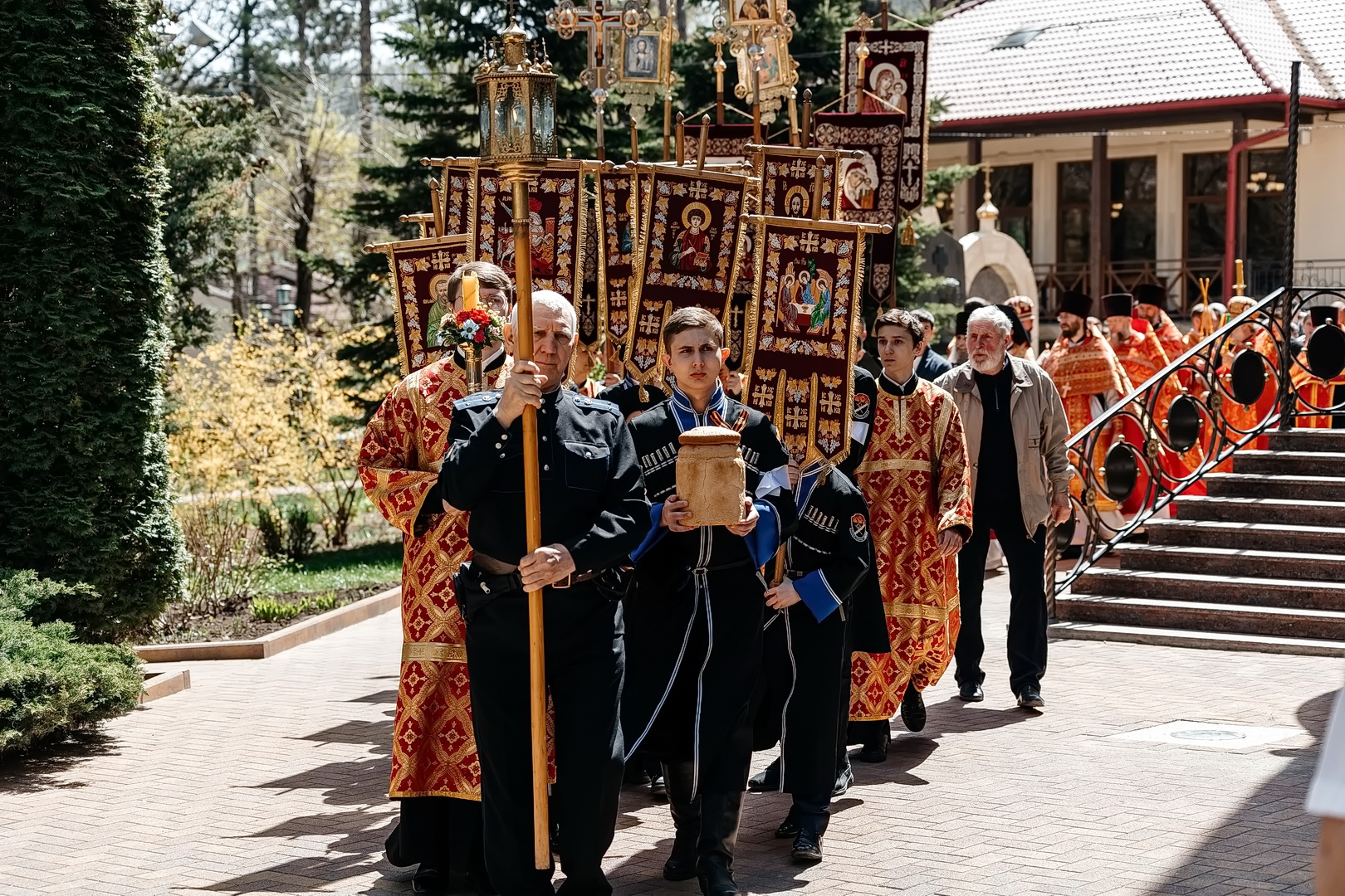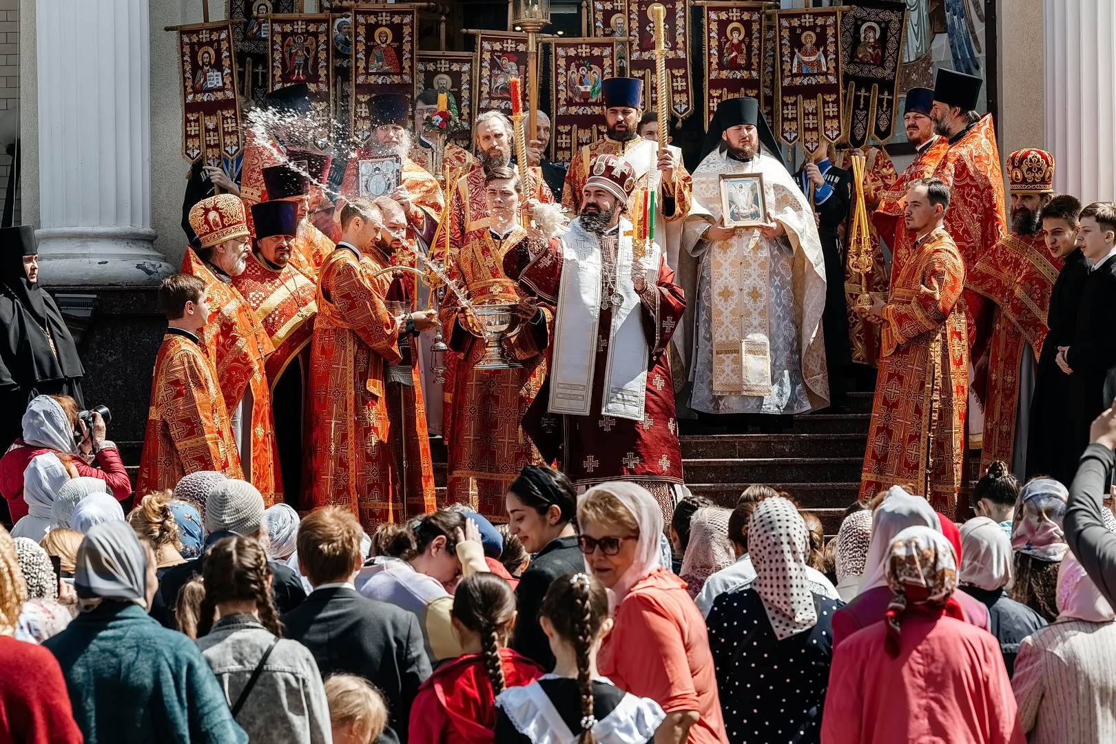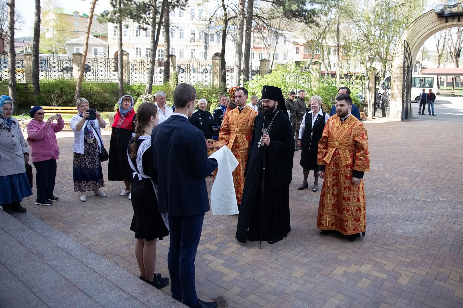 С Архипастырем помолились глава города Евгений Моисеев, насельницы Георгиевского женского монастыря во главе с игуменией Варварой (Шурыгиной), ученики и педагоги Православной Свято-Никольской классической гимназии, жители и гости города-курорта. Гимназический хор исполнил часть богослужебных песнопений, а казачата гимназии участвовали в крестном ходе.