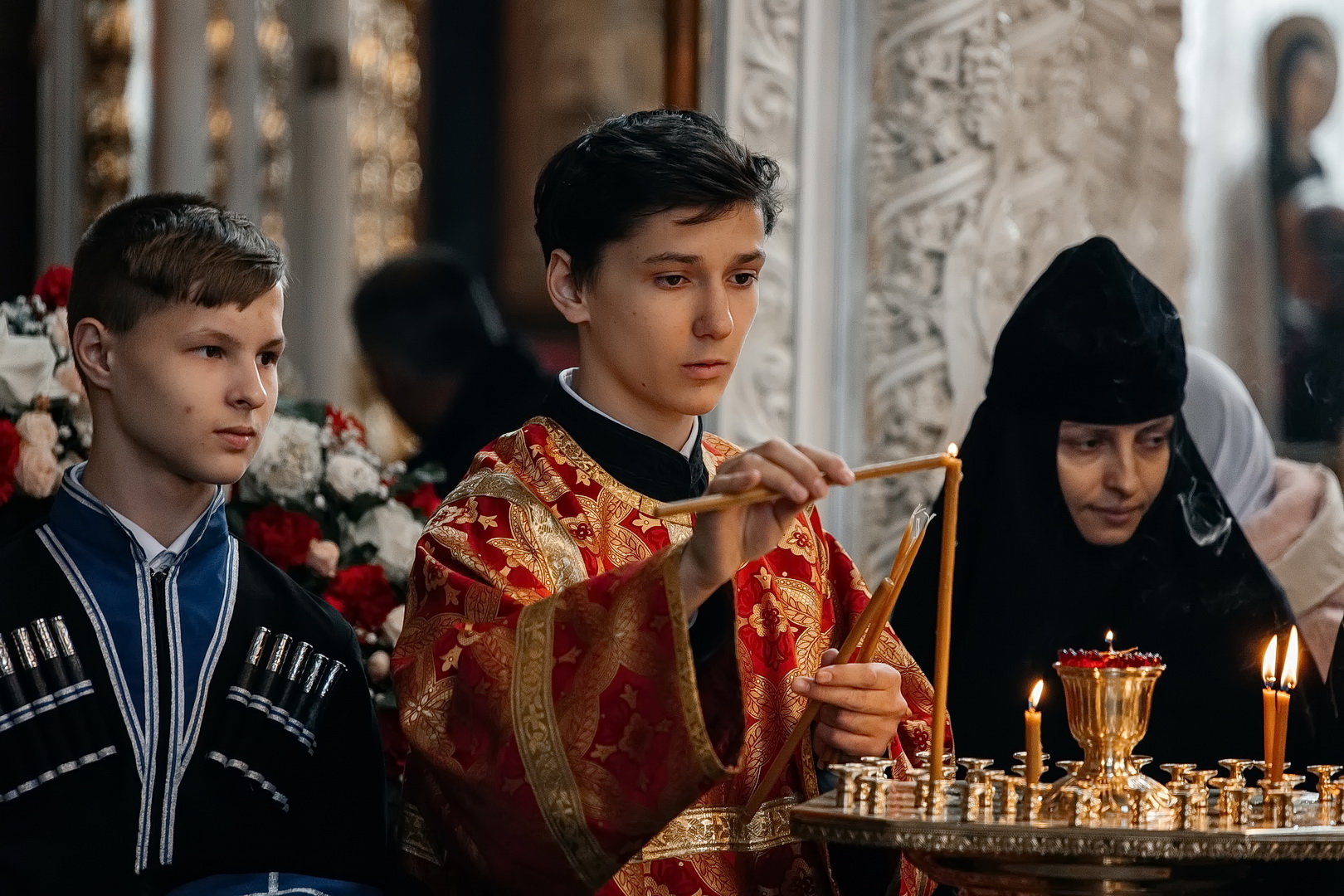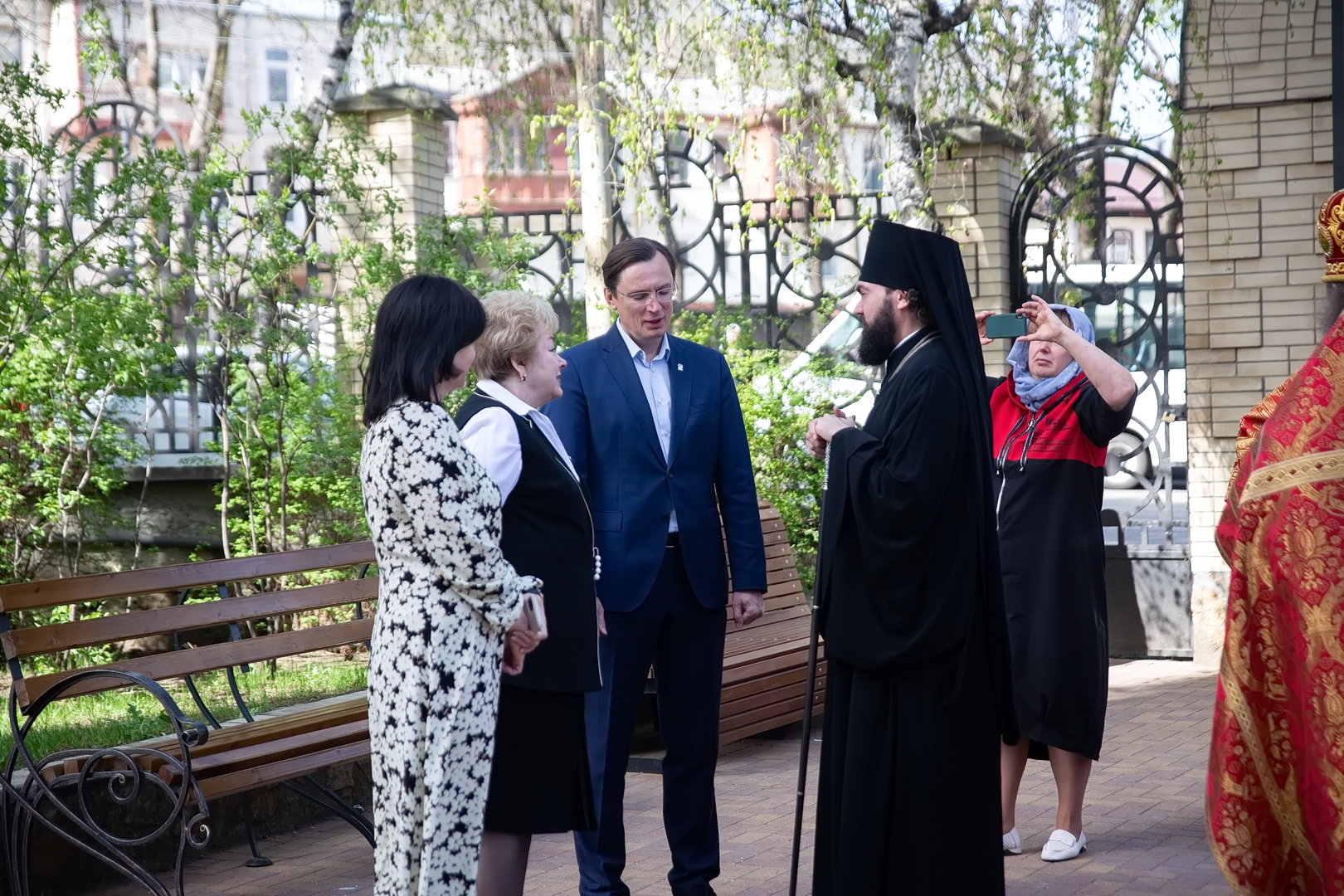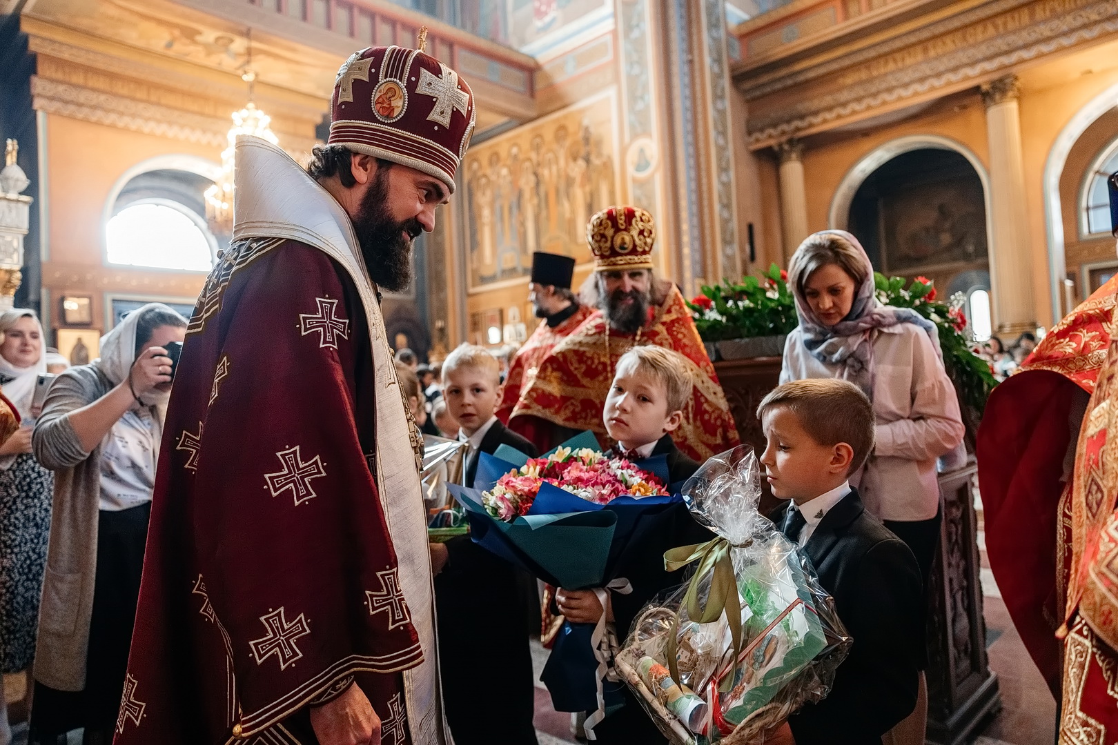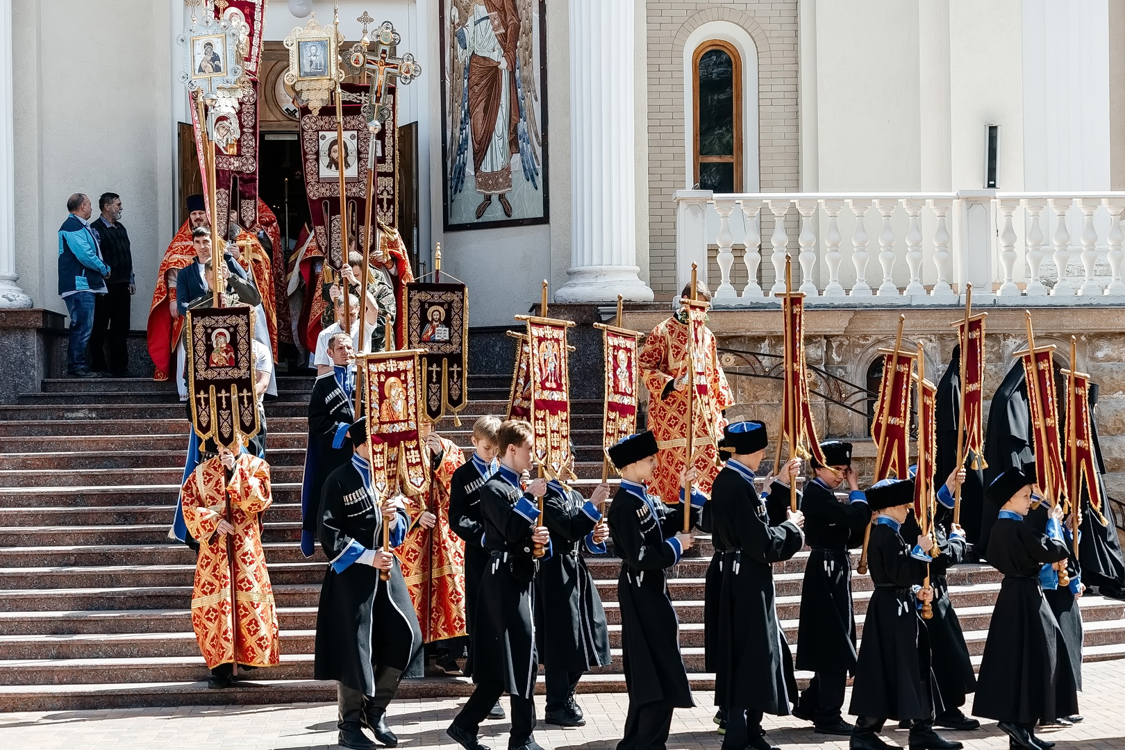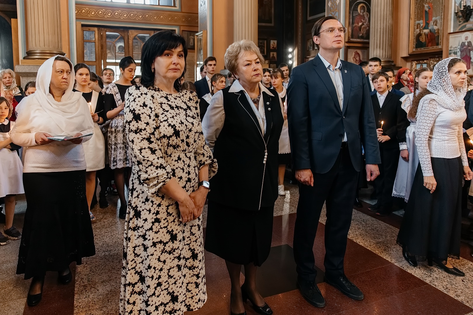 С Архипастырем помолились глава города Евгений Моисеев, насельницы Георгиевского женского монастыря во главе с игуменией Варварой (Шурыгиной), ученики и педагоги Православной Свято-Никольской классической гимназии, жители и гости города-курорта. Гимназический хор исполнил часть богослужебных песнопений, а казачата гимназии участвовали в крестном ходе.