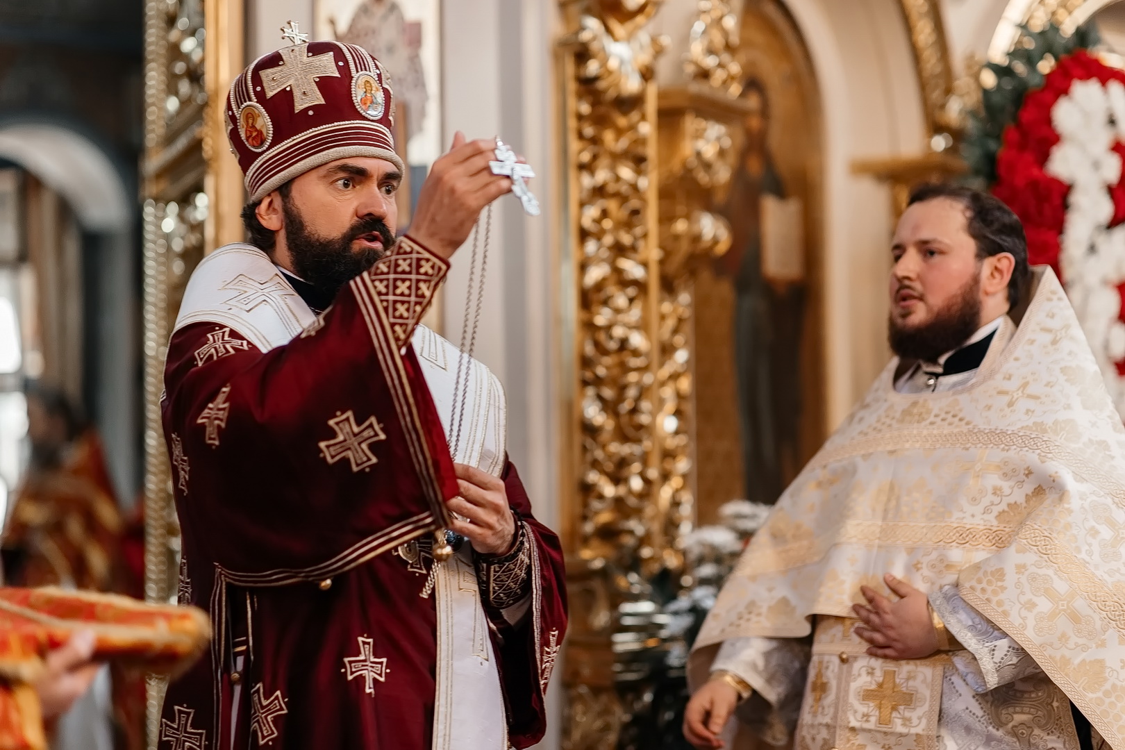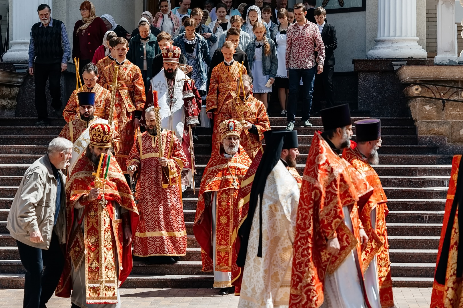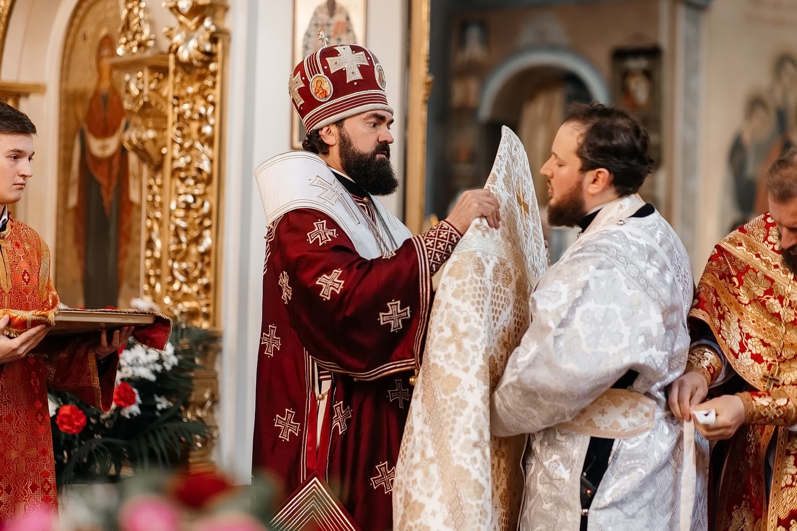 За Божественной литургией Архипастырь совершил пресвитерскую хиротонию насельника Бештаугорского монастыря и преподавателя Свято-Никольской гимназии иеродиакона Иоанна (Галумова). После литургии Владыка возглавил крестный ход и обратился к верующим с проповедью.