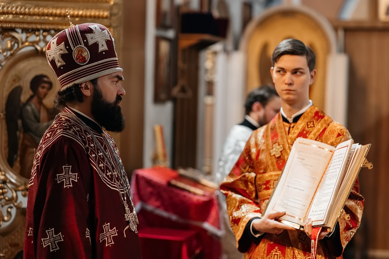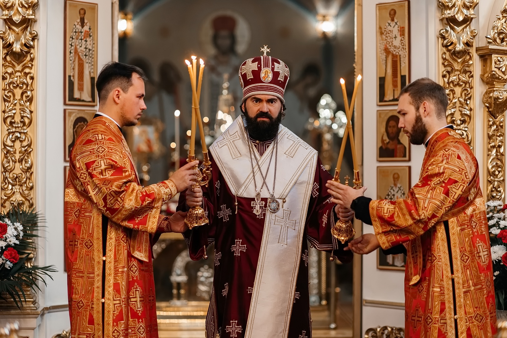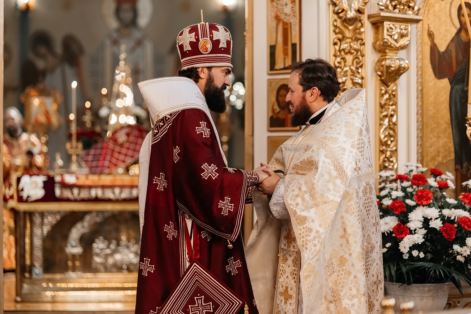 За Божественной литургией Архипастырь совершил пресвитерскую хиротонию насельника Бештаугорского монастыря и преподавателя Свято-Никольской гимназии иеродиакона Иоанна (Галумова). После литургии Владыка возглавил крестный ход и обратился к верующим с проповедью.