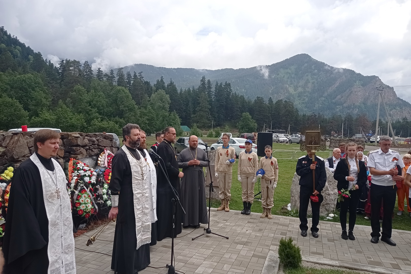 По традиции акция началась с торжественного марша от реки Большой Зеленчук к мемориалу воинам-освободителям Кавказских перевалов. Затем священники совершили панихиду, по окончании которой состоялся траурный митинг.