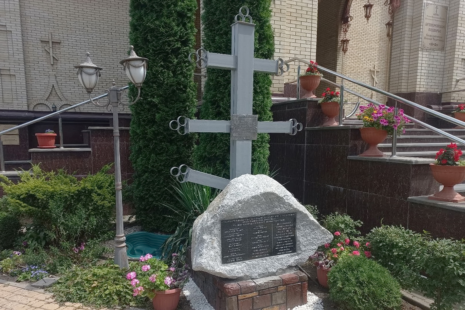 На памятной доске увековечены генералы Николай Петрусевич и Константин Никитин, хорунжий Стефан Фисенко и иерей Василий Хламов, многие другие известные жители Черкесска. Имена выдающихся горожан внесены в синодик собора, а у креста совершаются заупокойные богослужения в памятные дни