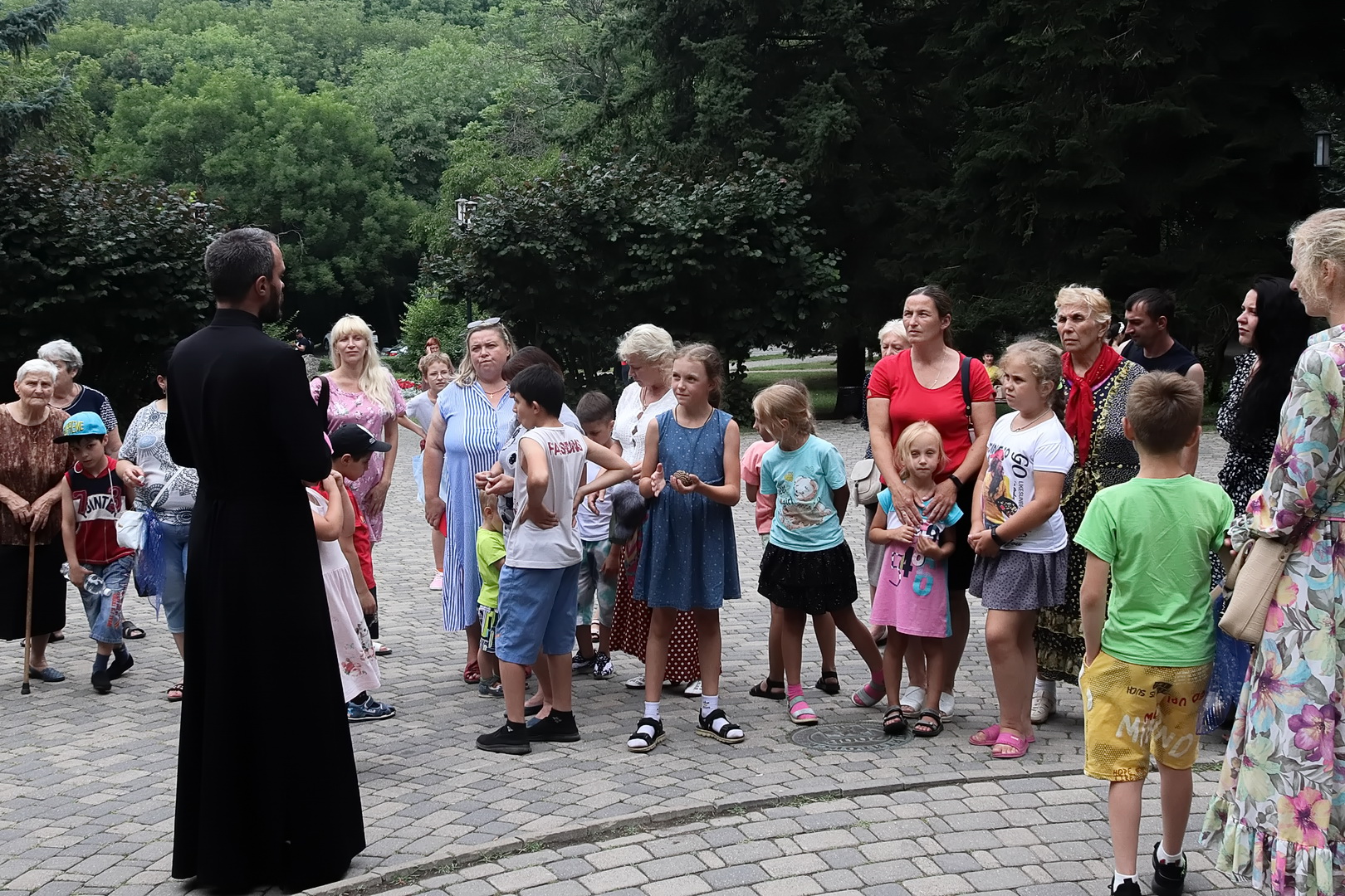 После литургии и трапезы отец настоятель передал благословение архиепископа Пятигорского и Черкесского Феофилакта, пообщался с гостями собора. По просьбе беженцев духовенство совершило заочные погребения их погибших родственников.