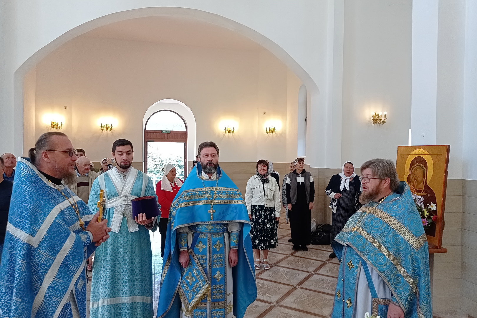 В день праздника сретения Владимирской иконы Пресвятой Богородицы благочинный Южного Карачаево-Черкесского округа Пятигорской епархии протоиерей Евгений Субтельный в сослужении настоятеля храма протоиерея Геннадия Соколова и настоятеля Никольского храма станицы Сторожевой протоиерея Андрея Кравченко совершил Божественную литургию в строящемся храме хутора Лесо-Кяфарь. Впервые богослужение совершили в верхней части храма, где ещё идут отделочные работы.
