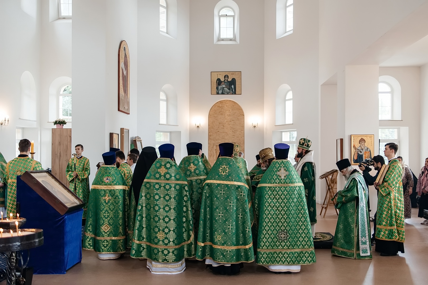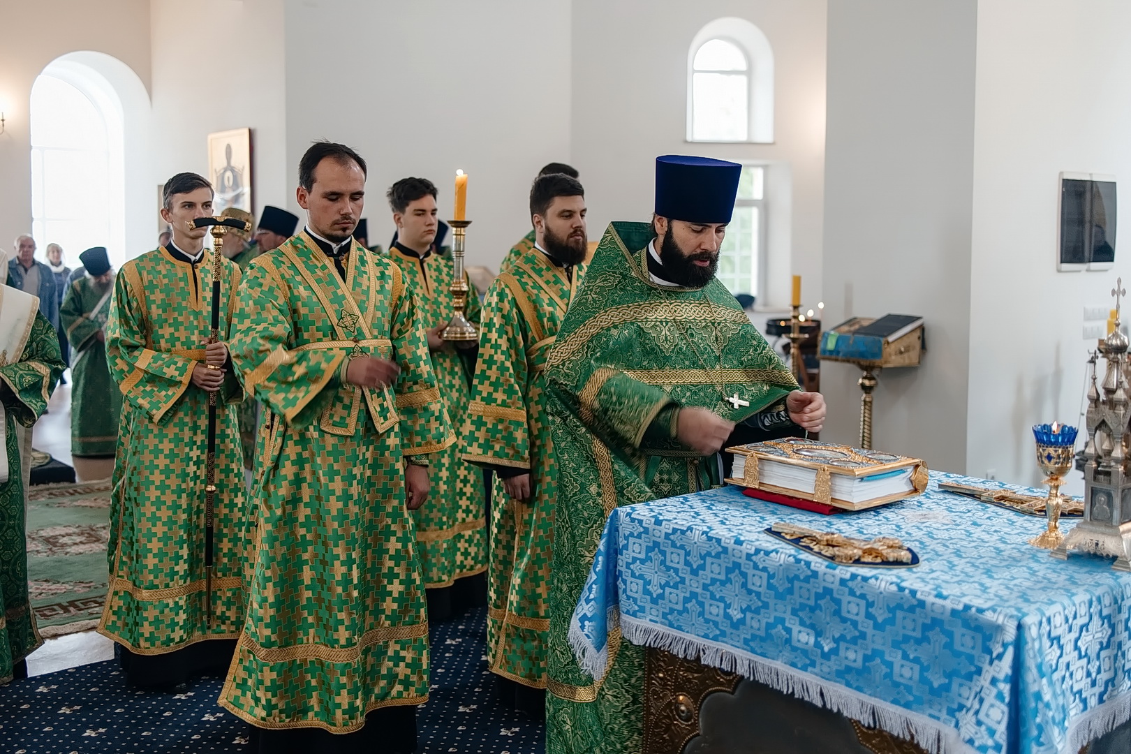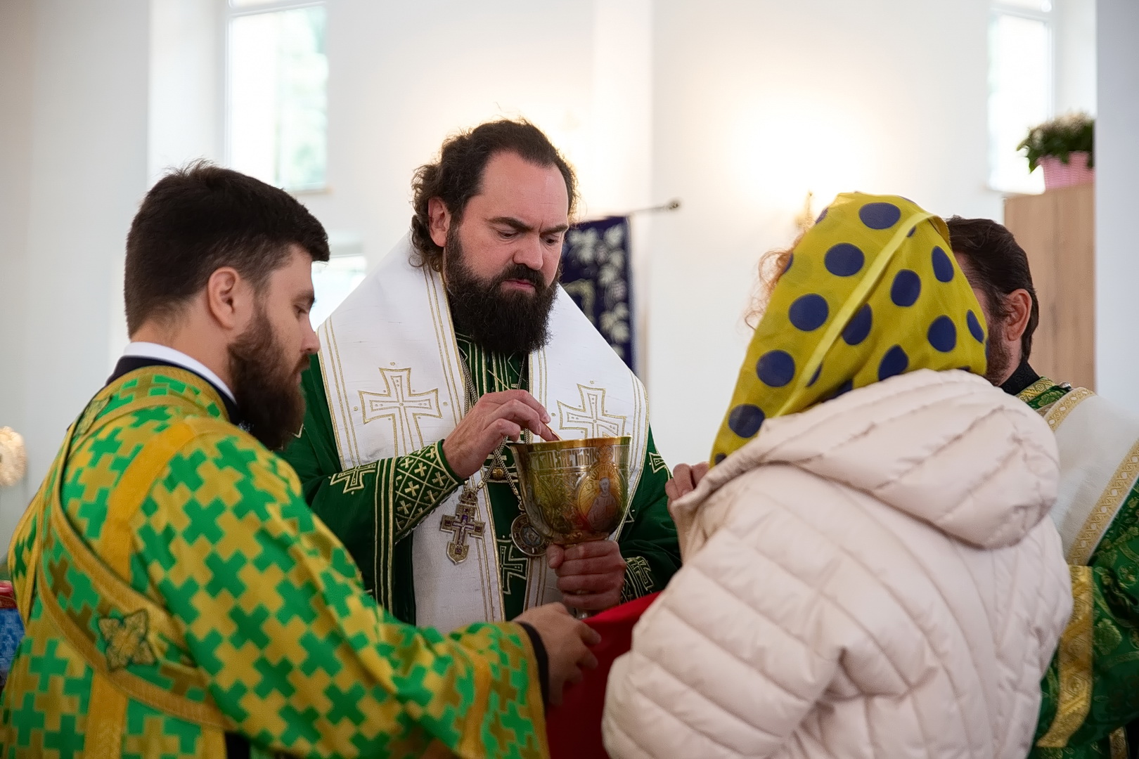 Богослужение началось с торжественного принесения в обитель иконы преподобного Александра Свирского с частицей его святых мощей, переданной для монастыря из Тихвинской епархии по благословению епископа Тихвинского и Лодейнопольского Мстислава.