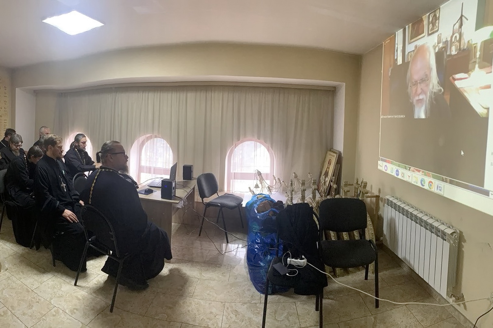 Затем участники встречи присоединились к первому занятию онлайн-курсов повышения квалификации для руководителей и сотрудников епархиальных социальных отделов, которое провел глава Синодального отдела по церковной благотворительности и социальному служению Русской Православной Церкви епископ Верейский Пантелеимон.