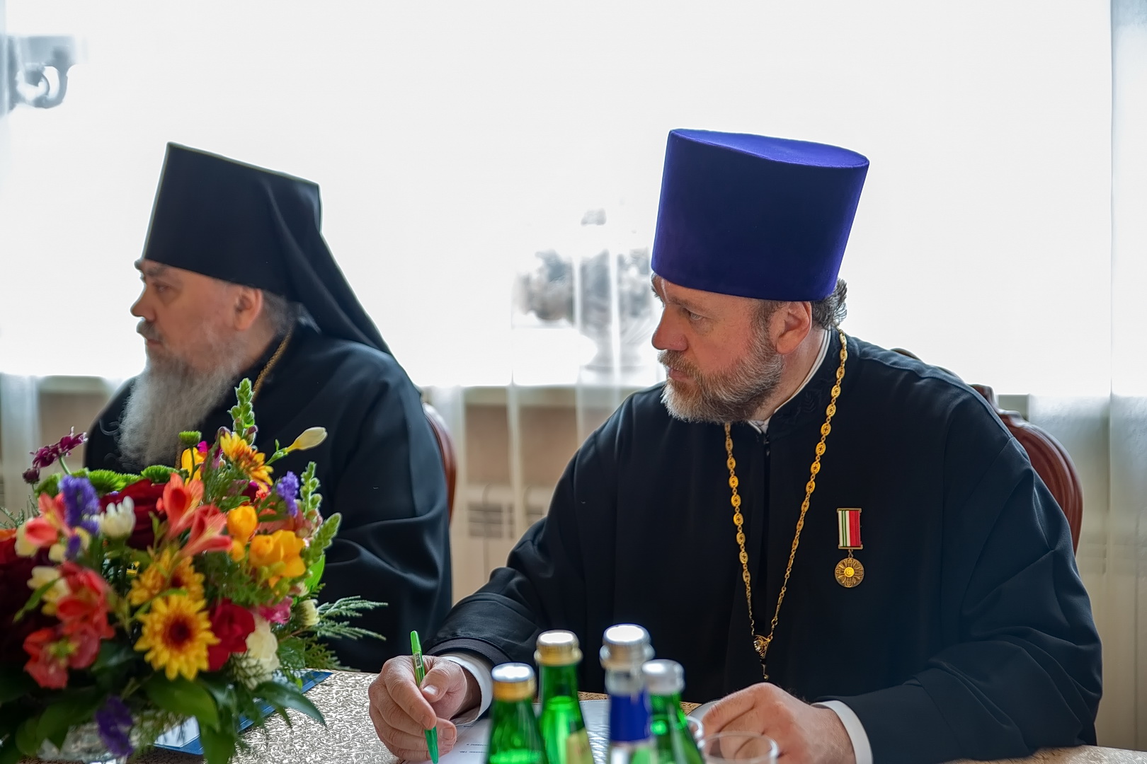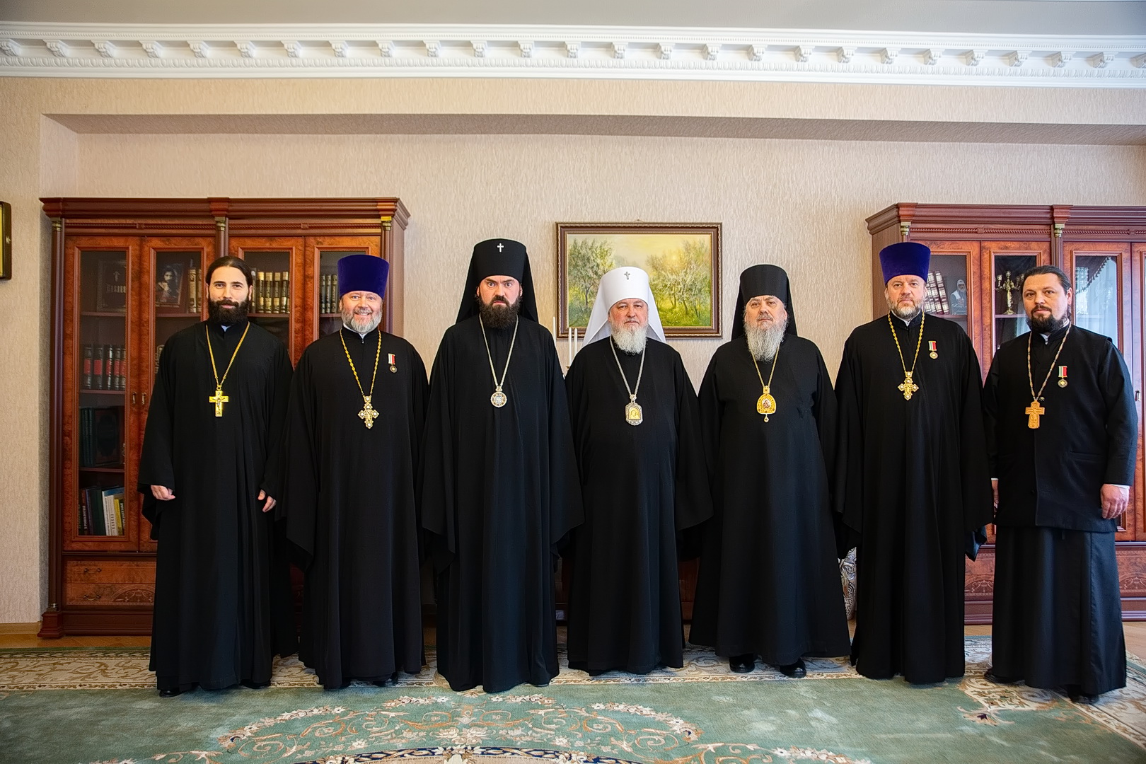 Архиепископ Феофилакт вручил медали «За труды на благо Пятигорской епархии» III степени секретарю Архиерейского Совета Ставропольской митрополии протоиерею Иоанну Моздору, секретарю Георгиевского епархиального управления протоиерею Анатолию Маршалкину, благочинному I Ставропольского округа Ставропольской епархии протоиерею Александру Гомзяку.