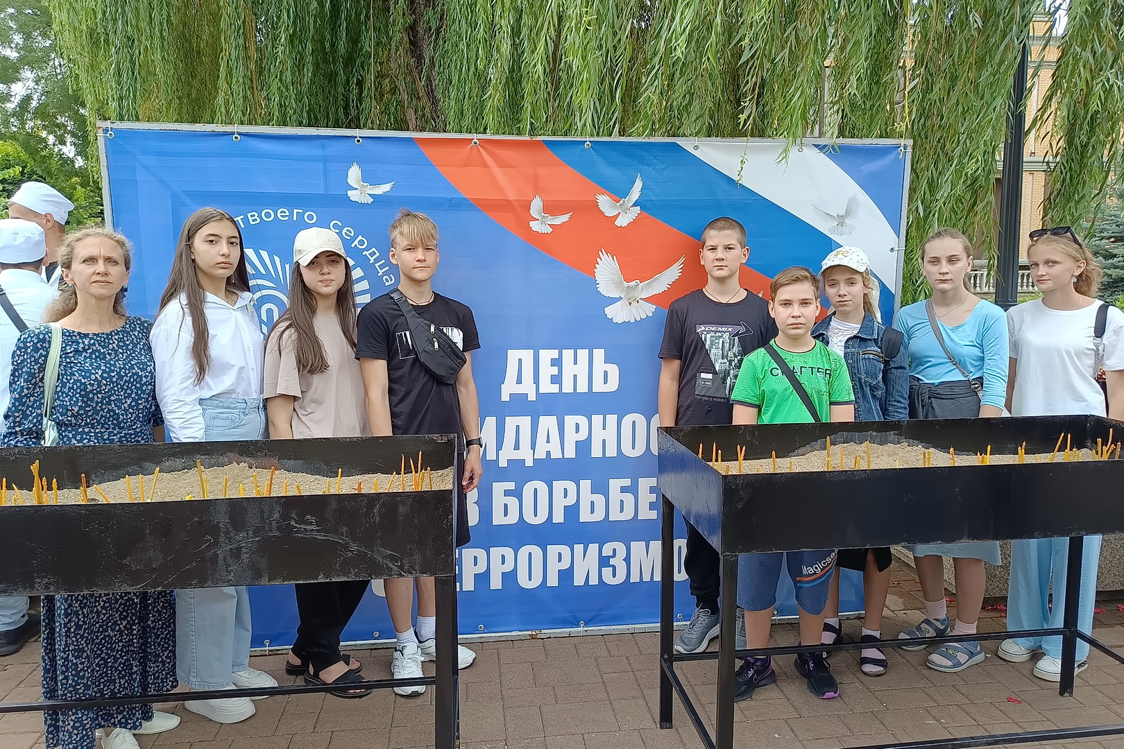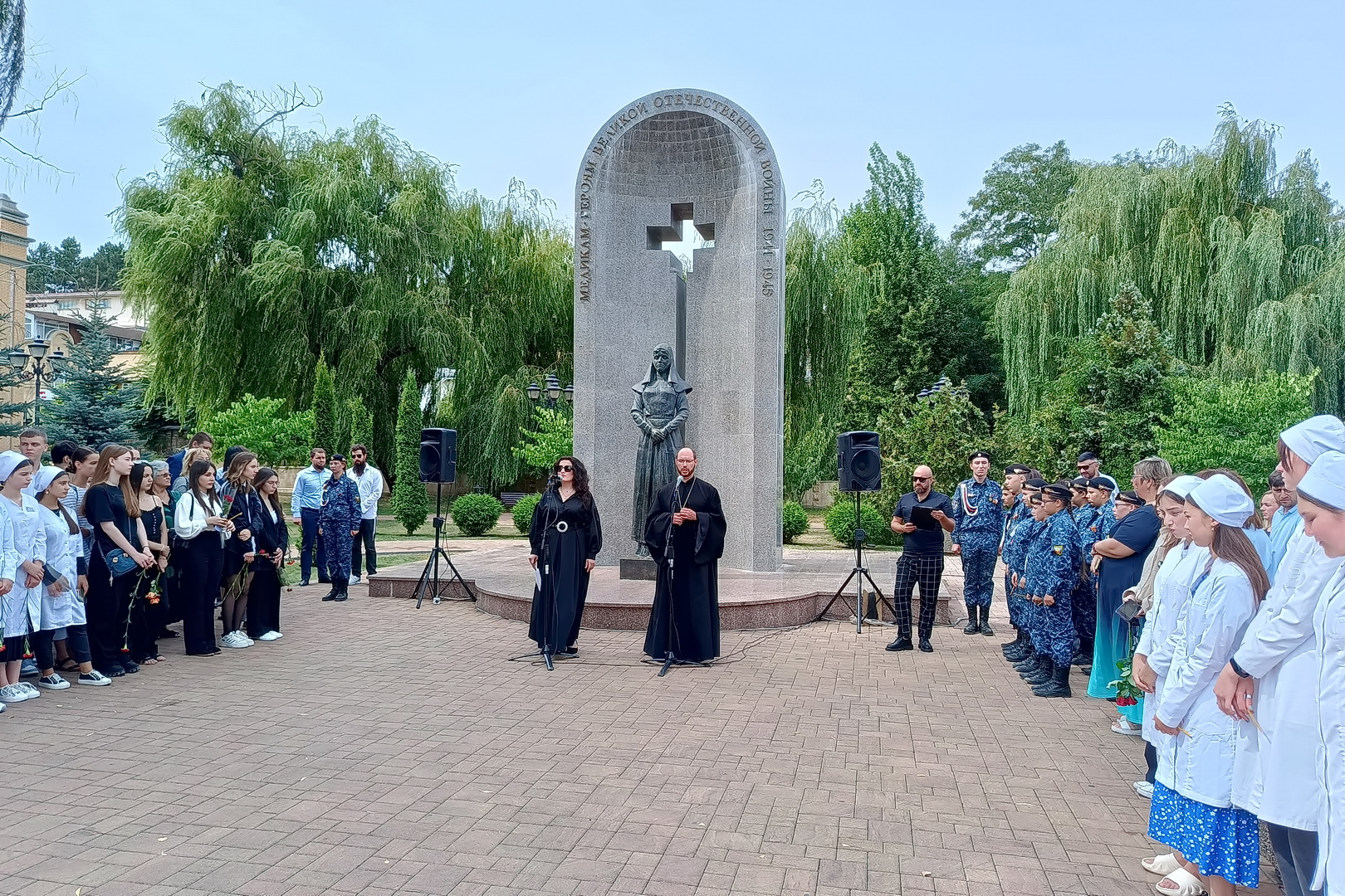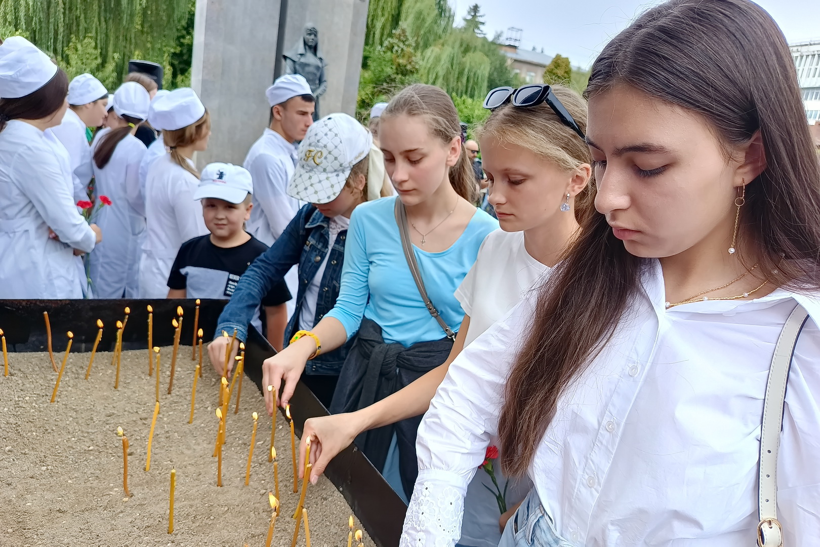 Затем состоялась городская молодежная акция «Мы помним» у памятника «Героям-медикам Великой Отечественной войны 1941-1945гг.». Её участники зажгли свечи памяти, почтив минутой молчания погибших от террористических актов. Траурную акцию посетили священник Георгий Лиманов и учащиеся Православной Свято-Никольской классической гимназии.