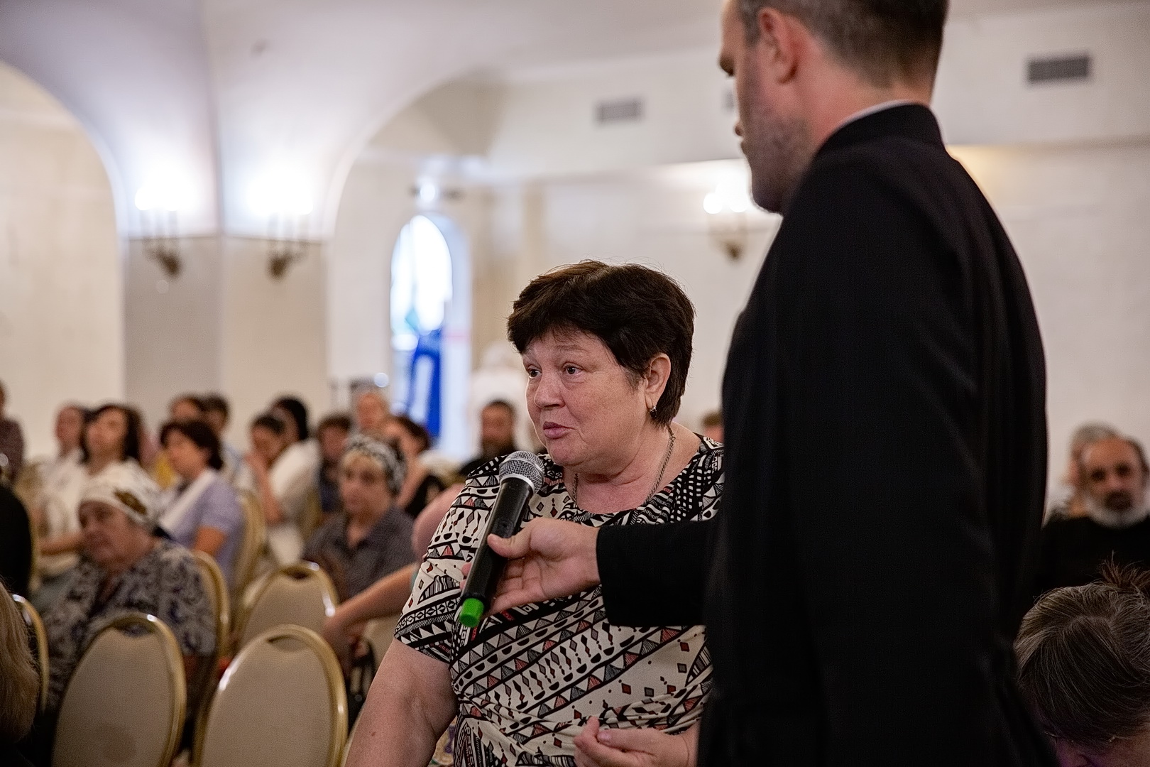 Матушка Марина Фомина поделилась опытом работы центра «Совенок» при храме Трех Святителей города Пятигорска, обратив внимание на важность прививания духовных ценностей, начиная с дошкольного возраста. Участники педсовета задали матушке множество вопросов.