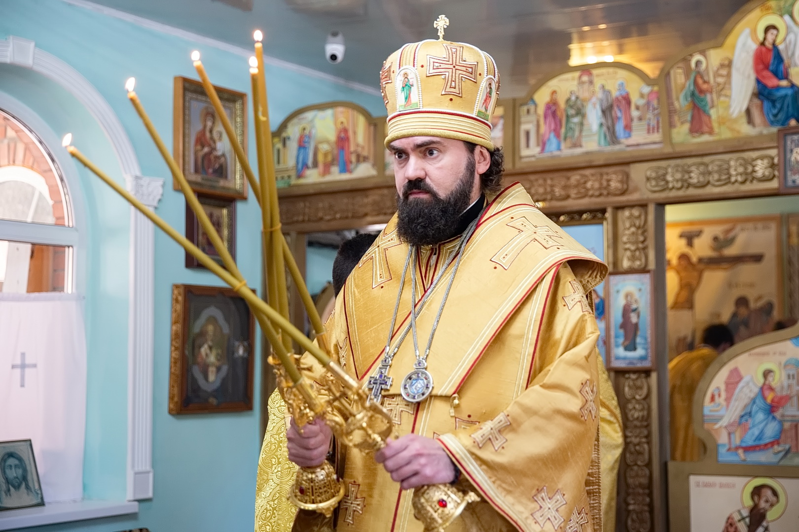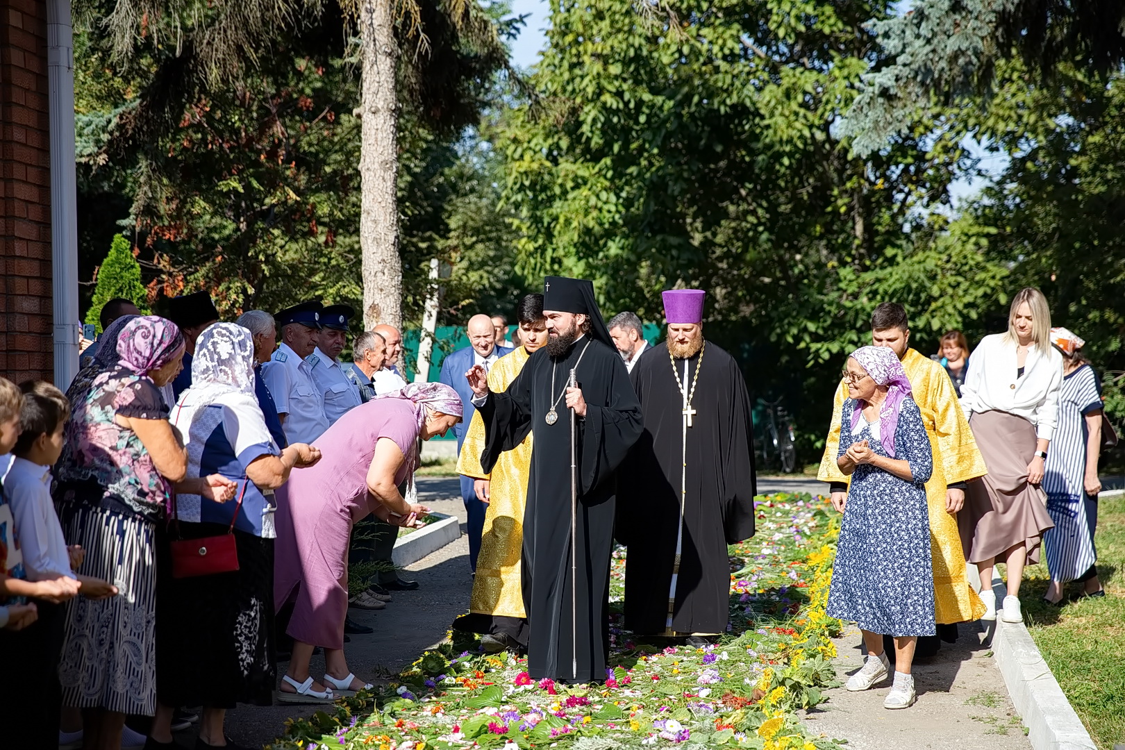 Архиерею сослужило духовенство Новопавловского округа Пятигорской епархии во главе с благочинным иереем Александром Гординым и протодиакон Димитрий Куба. С Архипастырем помолились казаки и жители станицы.