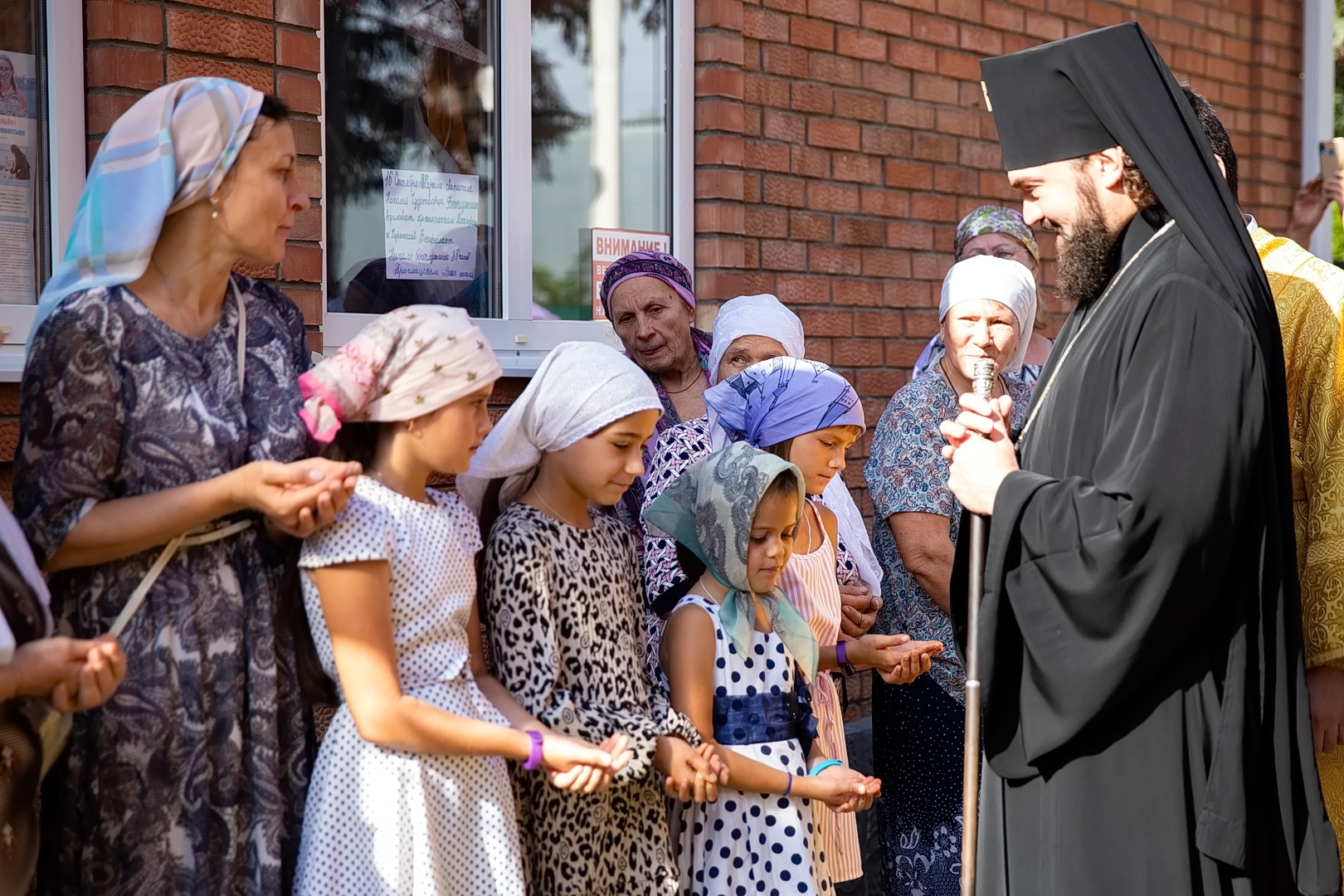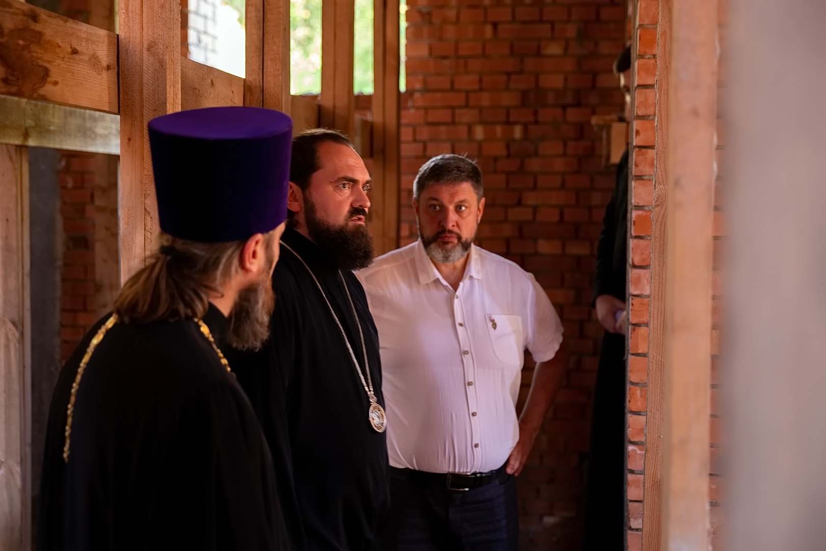 После литургии Владыка обратился к верующим с проповедью и осмотрел строительство храма, которое ведется в станице.
