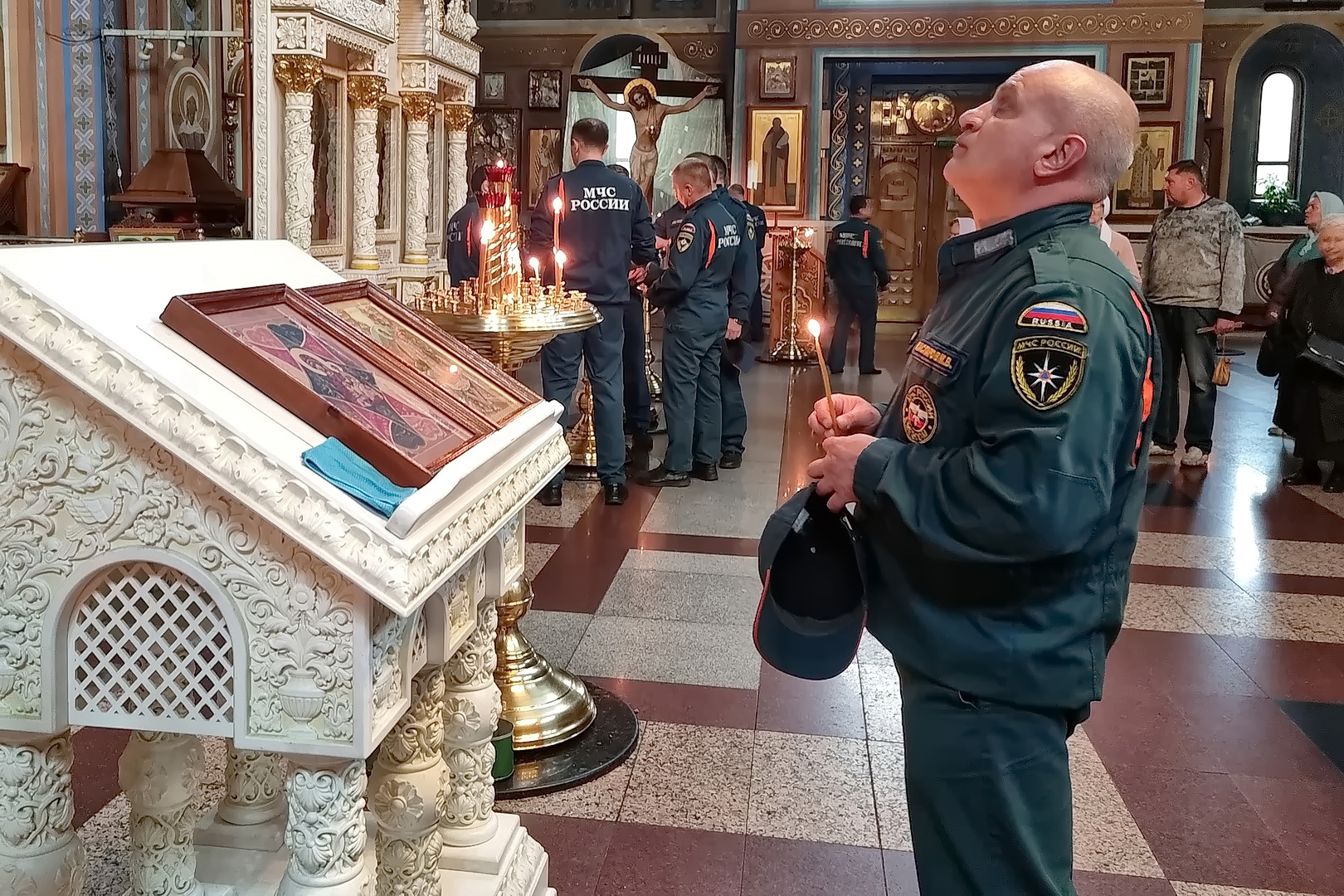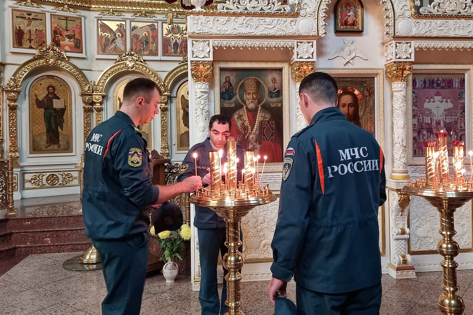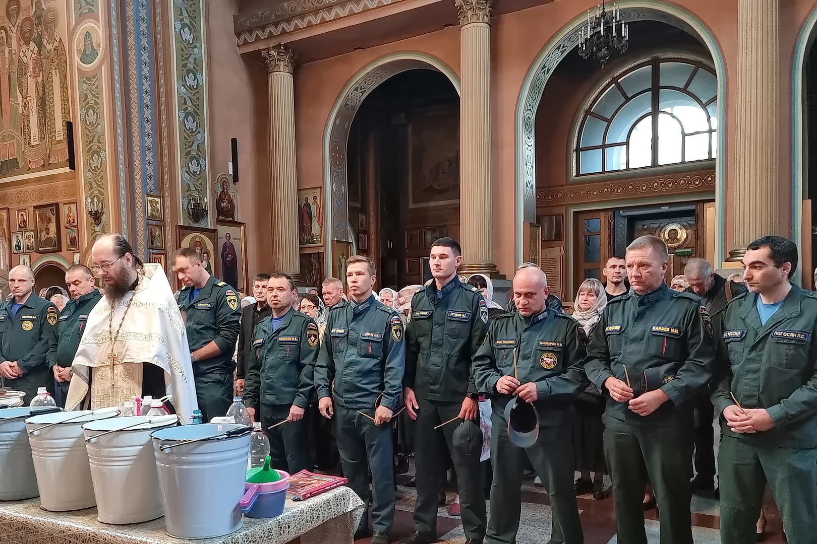 За богослужением молились сотрудники поисково-спасательного подразделения МЧС города Кисловодска. После молебна протоиерей Димитрий Чеканов поблагодарил пожарных и спасателей за героический труд, отметил их чувство долга и вручил иконки Пресвятой Богородицы.
