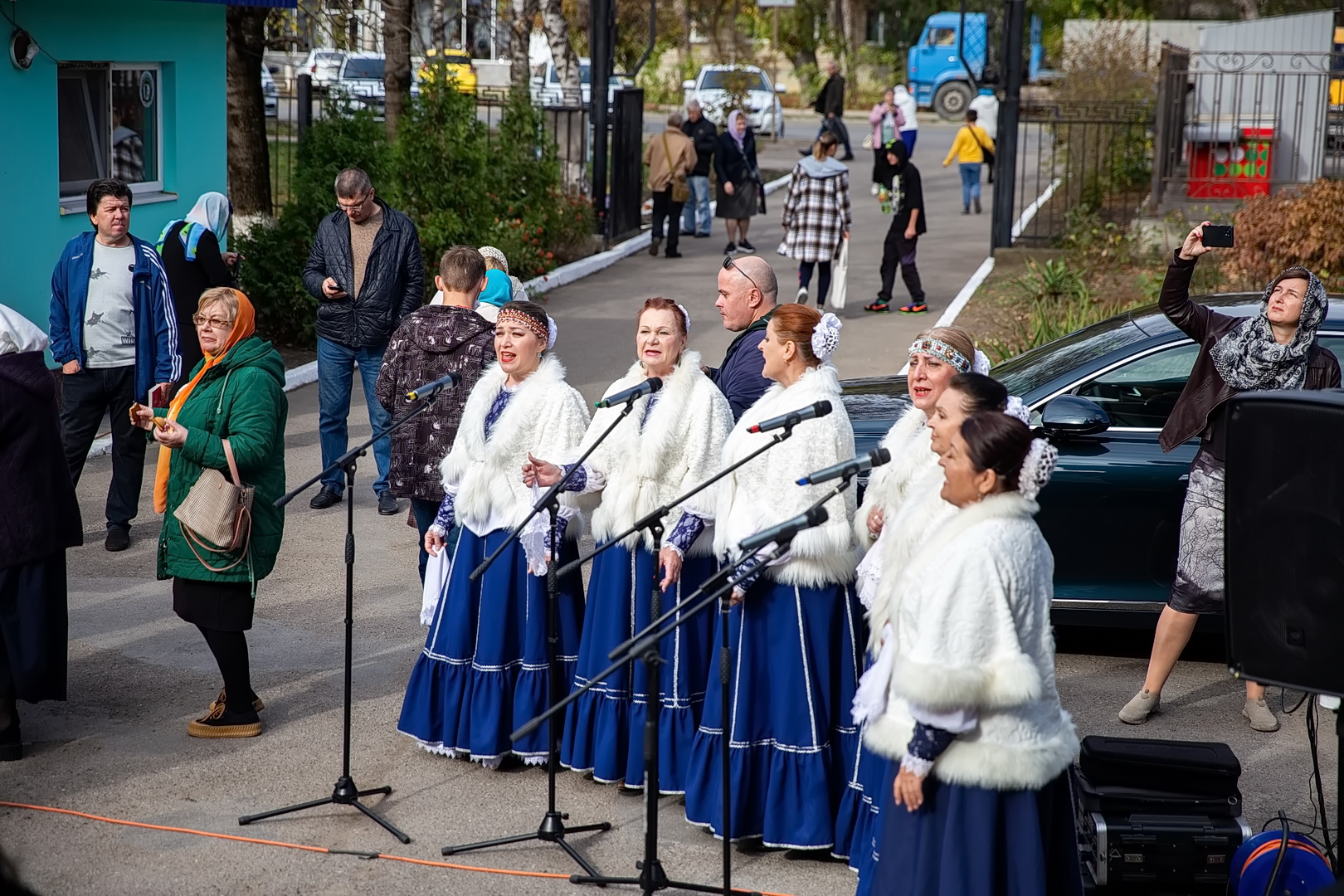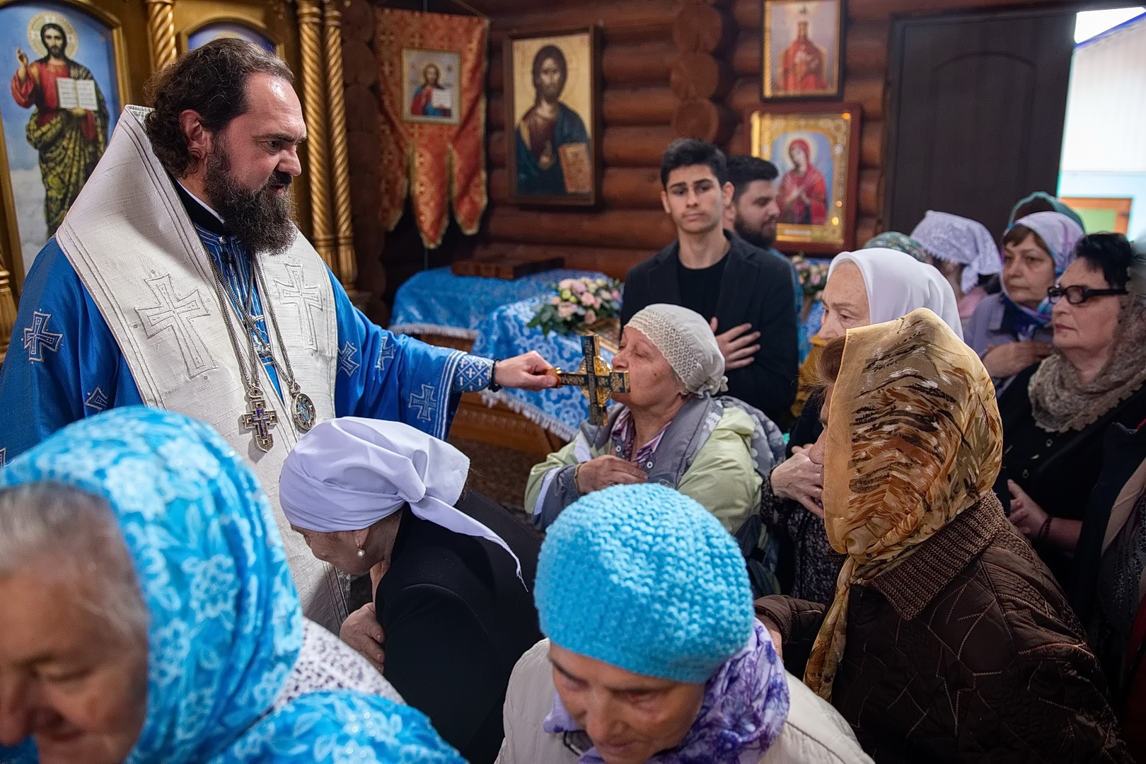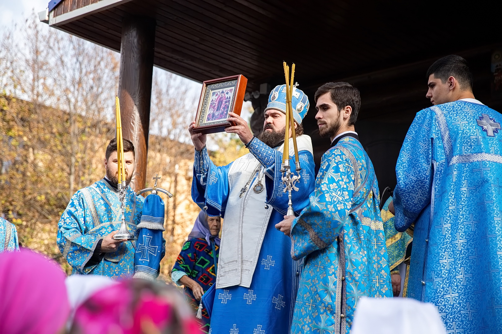 После литургии Владыка возглавил крестный ход, совершил славление Пресвятой Богородицы и обратился к верующим с проповедью. По окончании богослужения сестры милосердия раздали его участникам угощение, а казачий народный ансамбль дал небольшой концерт.