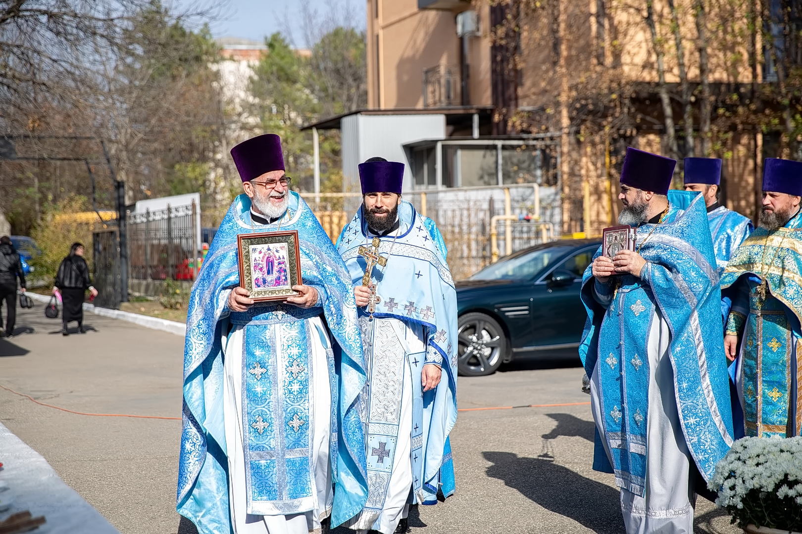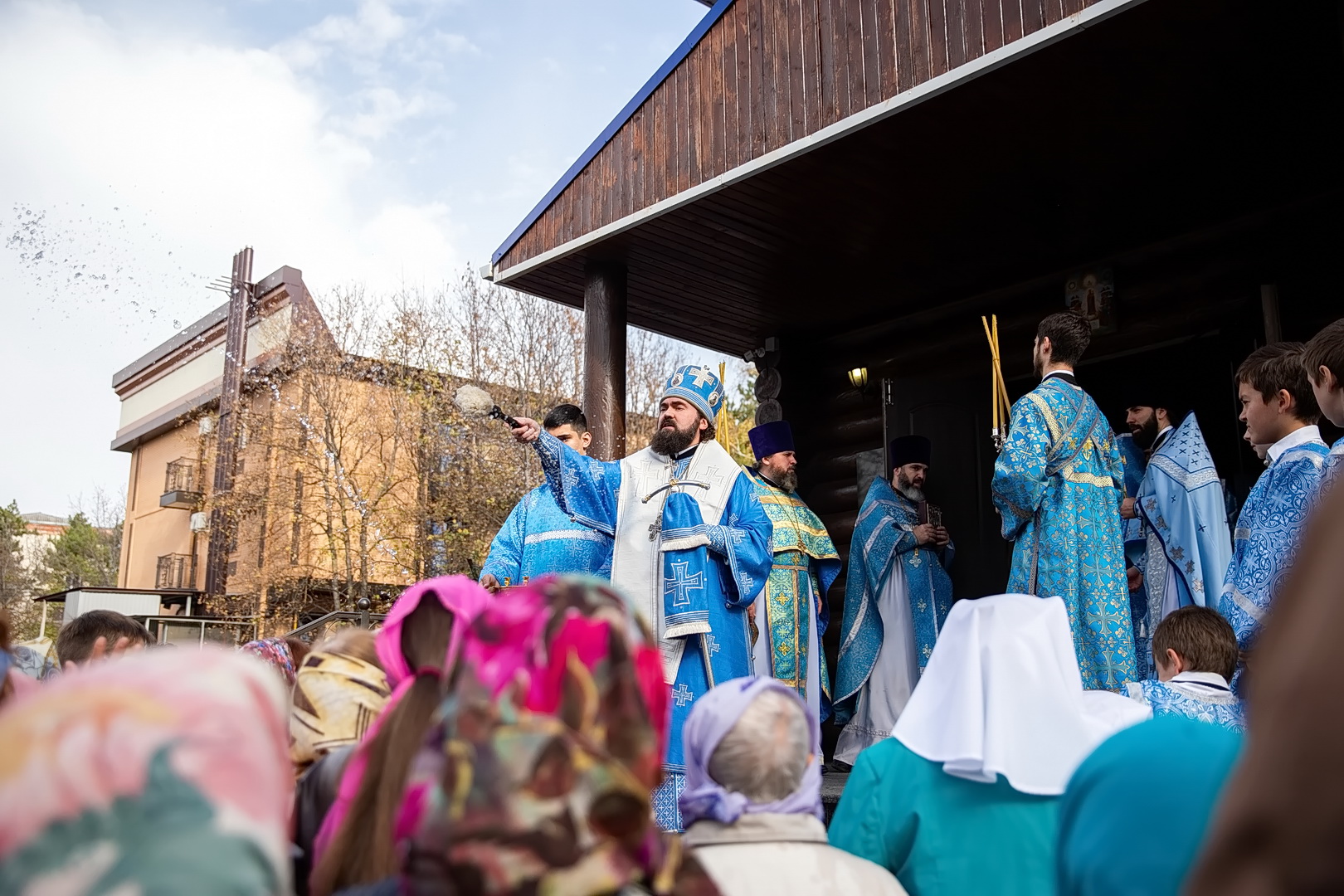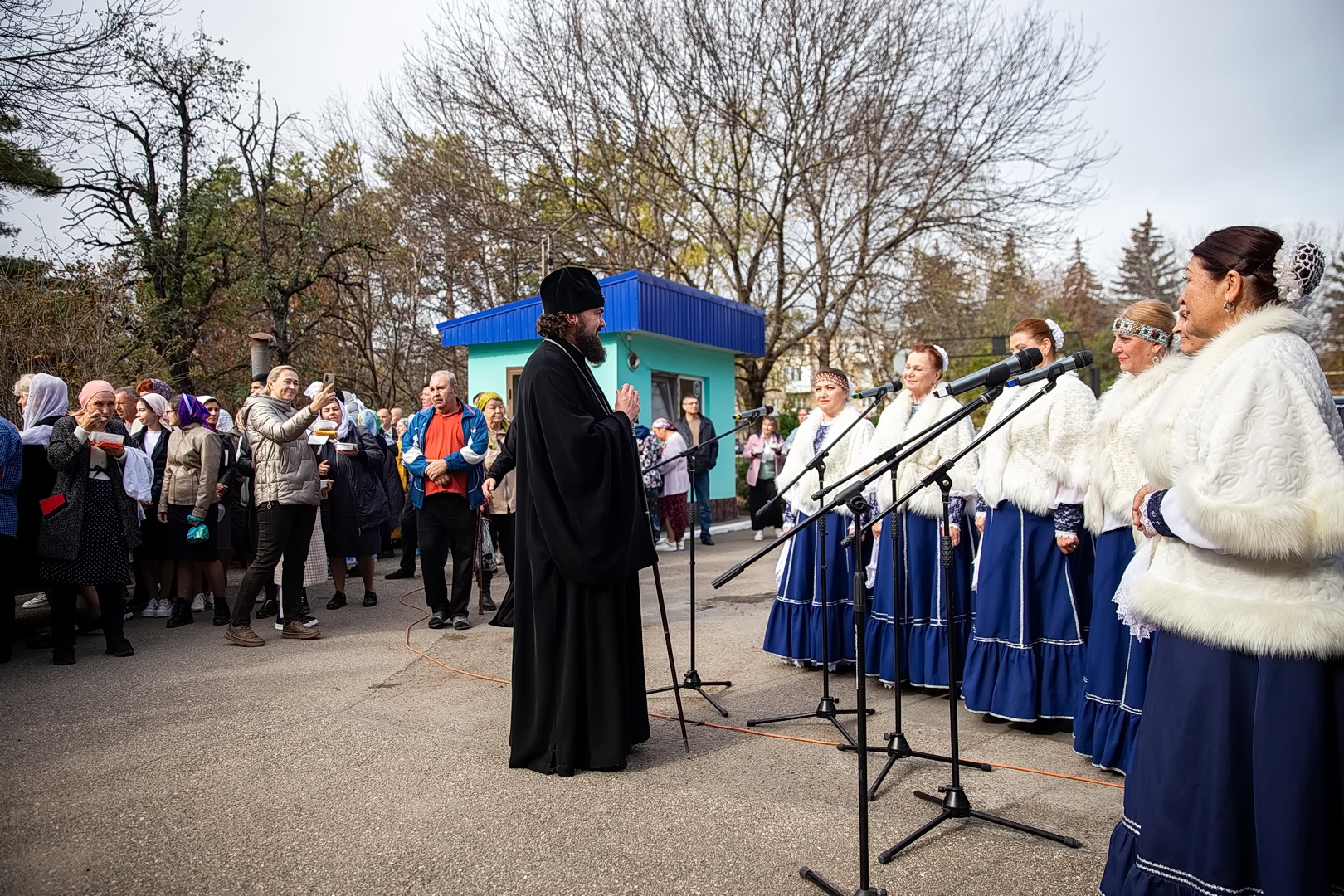 После литургии Владыка возглавил крестный ход, совершил славление Пресвятой Богородицы и обратился к верующим с проповедью. По окончании богослужения сестры милосердия раздали его участникам угощение, а казачий народный ансамбль дал небольшой концерт.