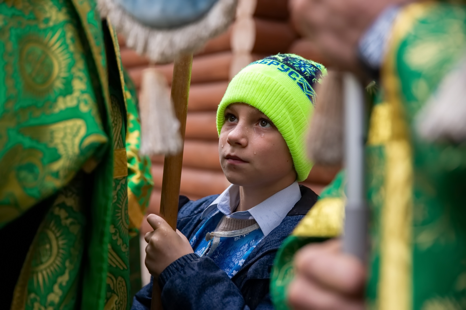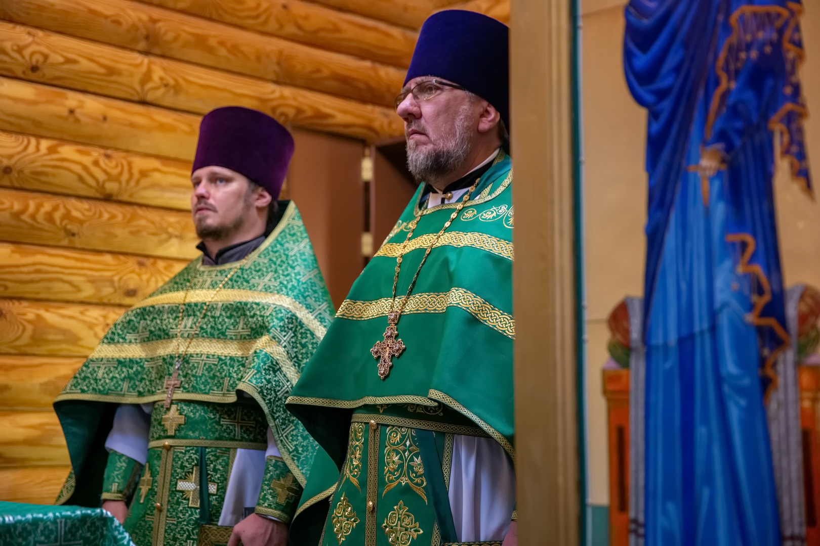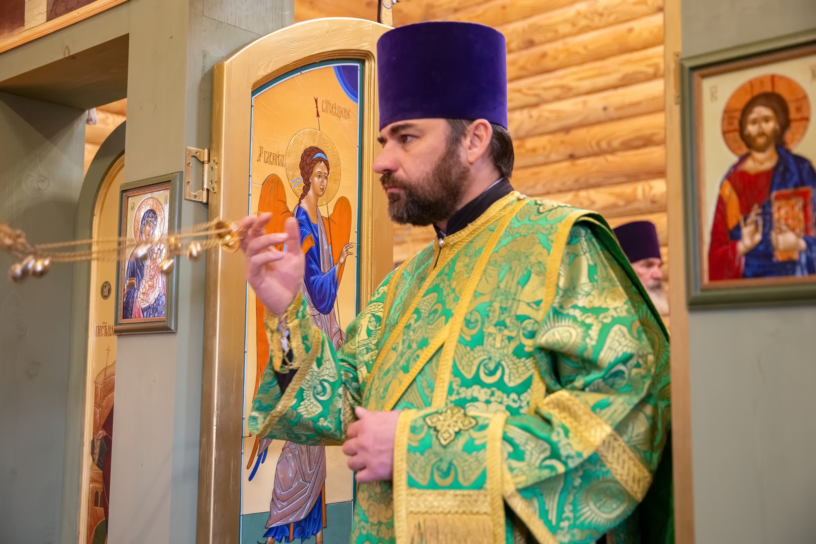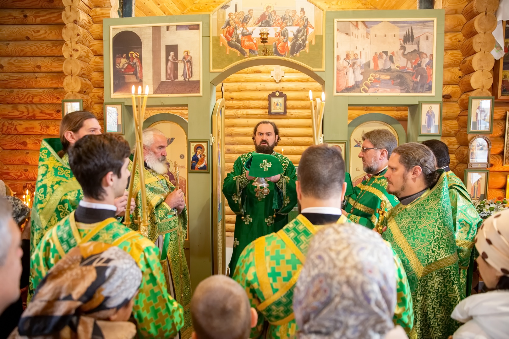 После литургии Владыка возглавил крестный ход, совершил славление небесных покровителей храма и обратился к верующим с проповедью.