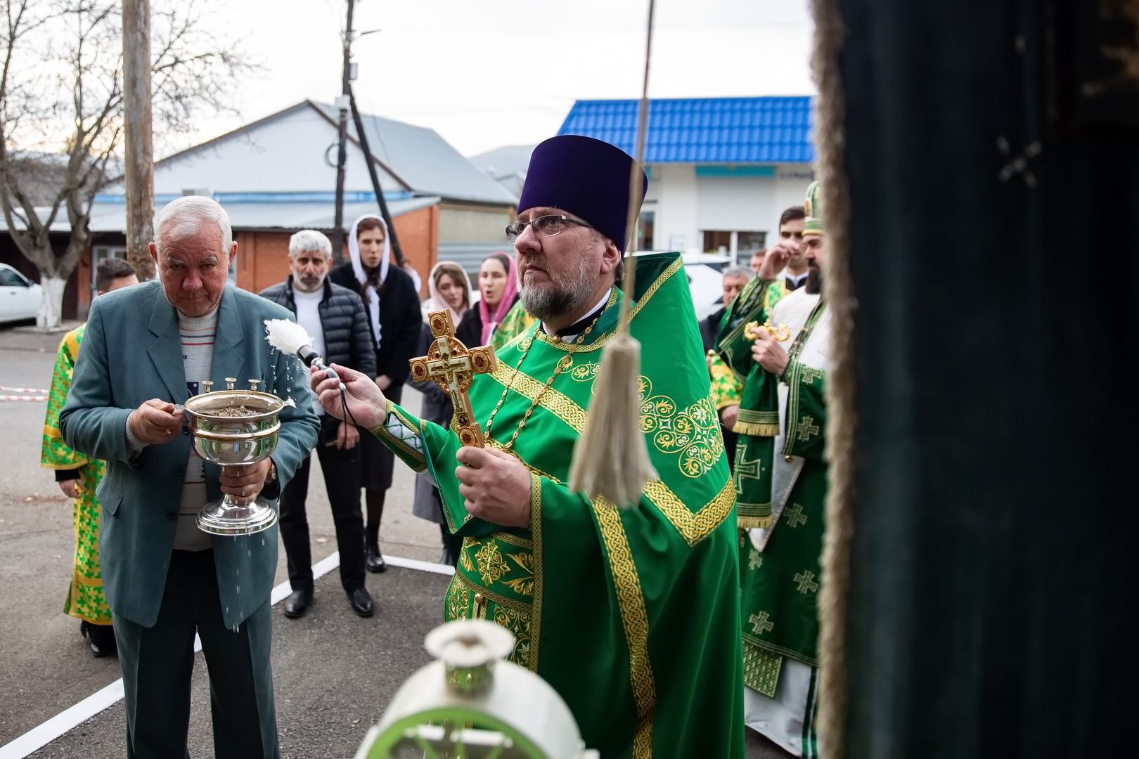 14 ноября 2023 года архиепископ Пятигорский и Черкесский Феофилакт совершил Божественную литургию в храме бессребреников и чудотворцев Космы и Дамиана поселка Иноземцево.