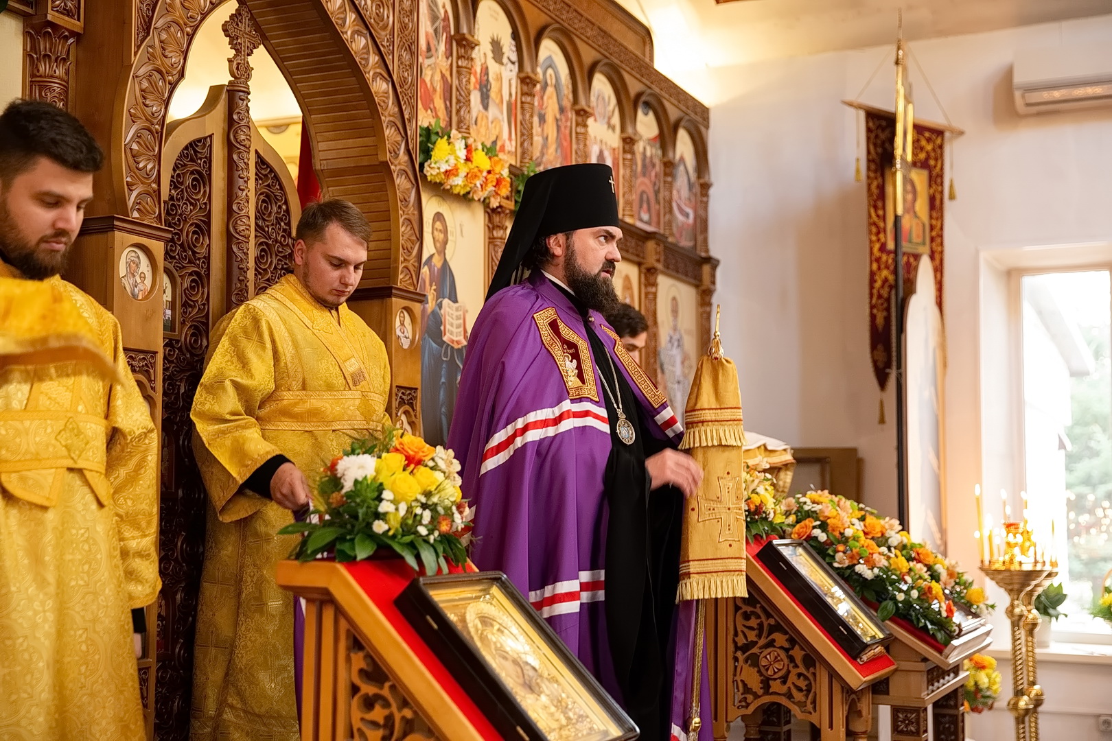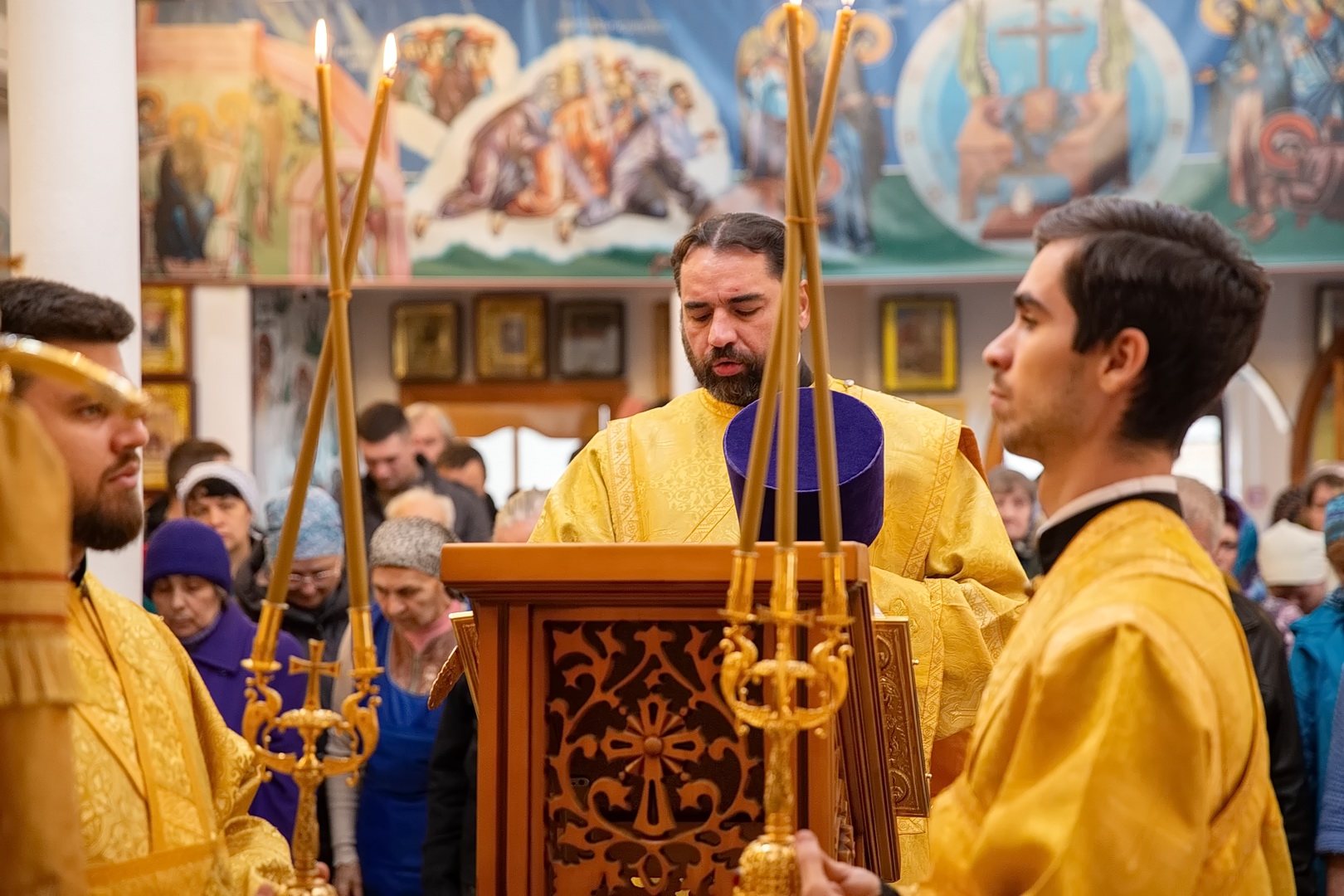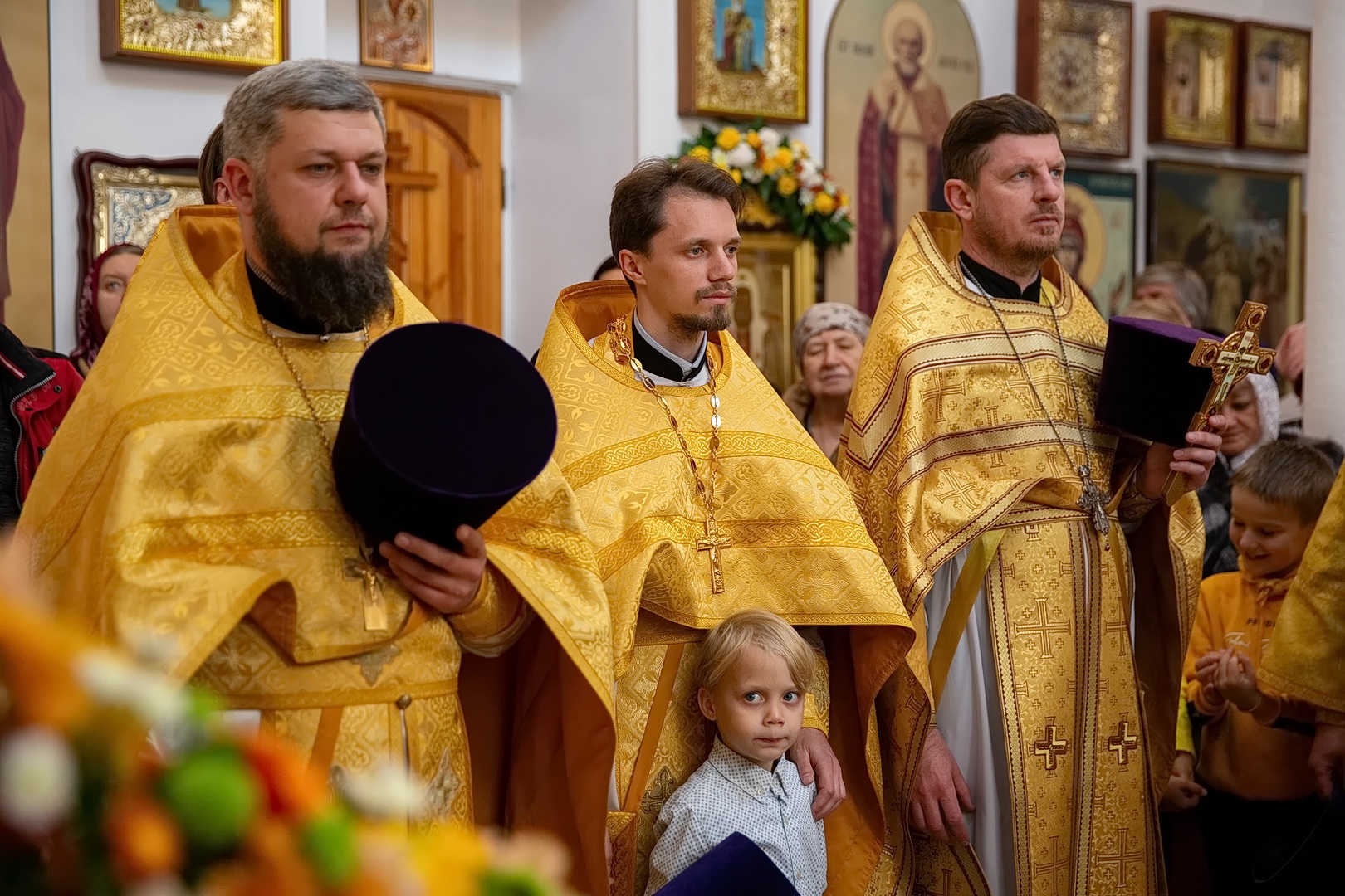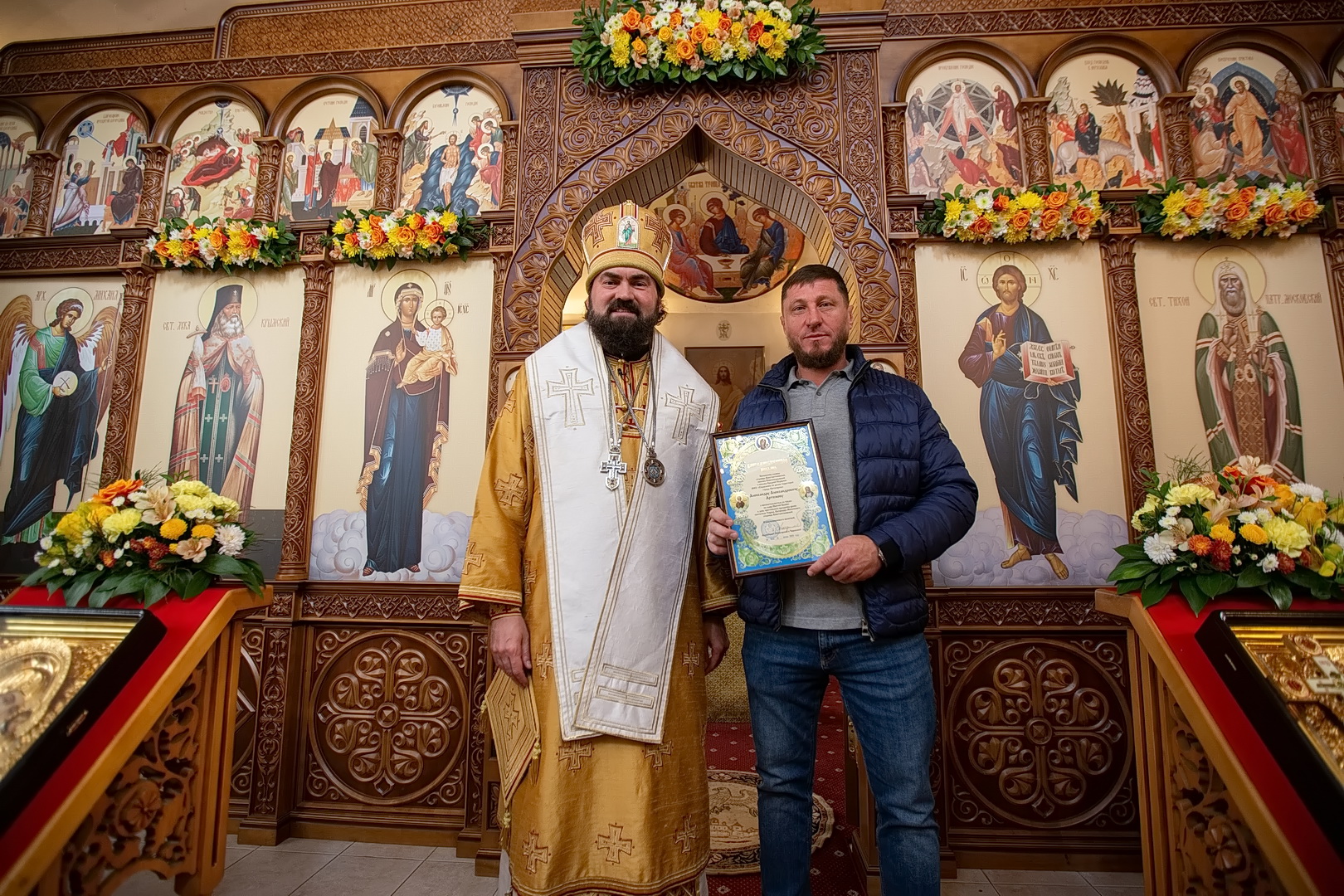 После литургии Владыка возглавил крестный ход, вручил благодарственное письмо благотворителю храма и обратился к верующим с проповедью. Затем с поздравлением перед участниками праздника выступили воспитанники приходской воскресной школы.