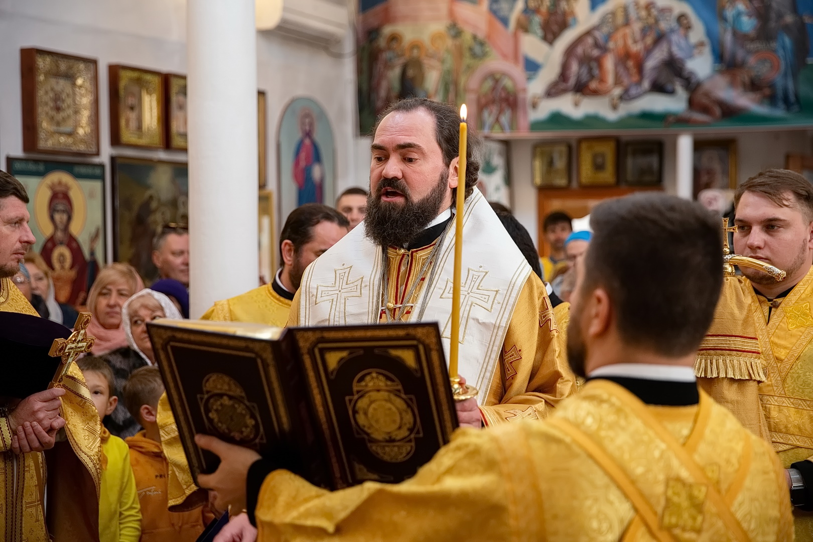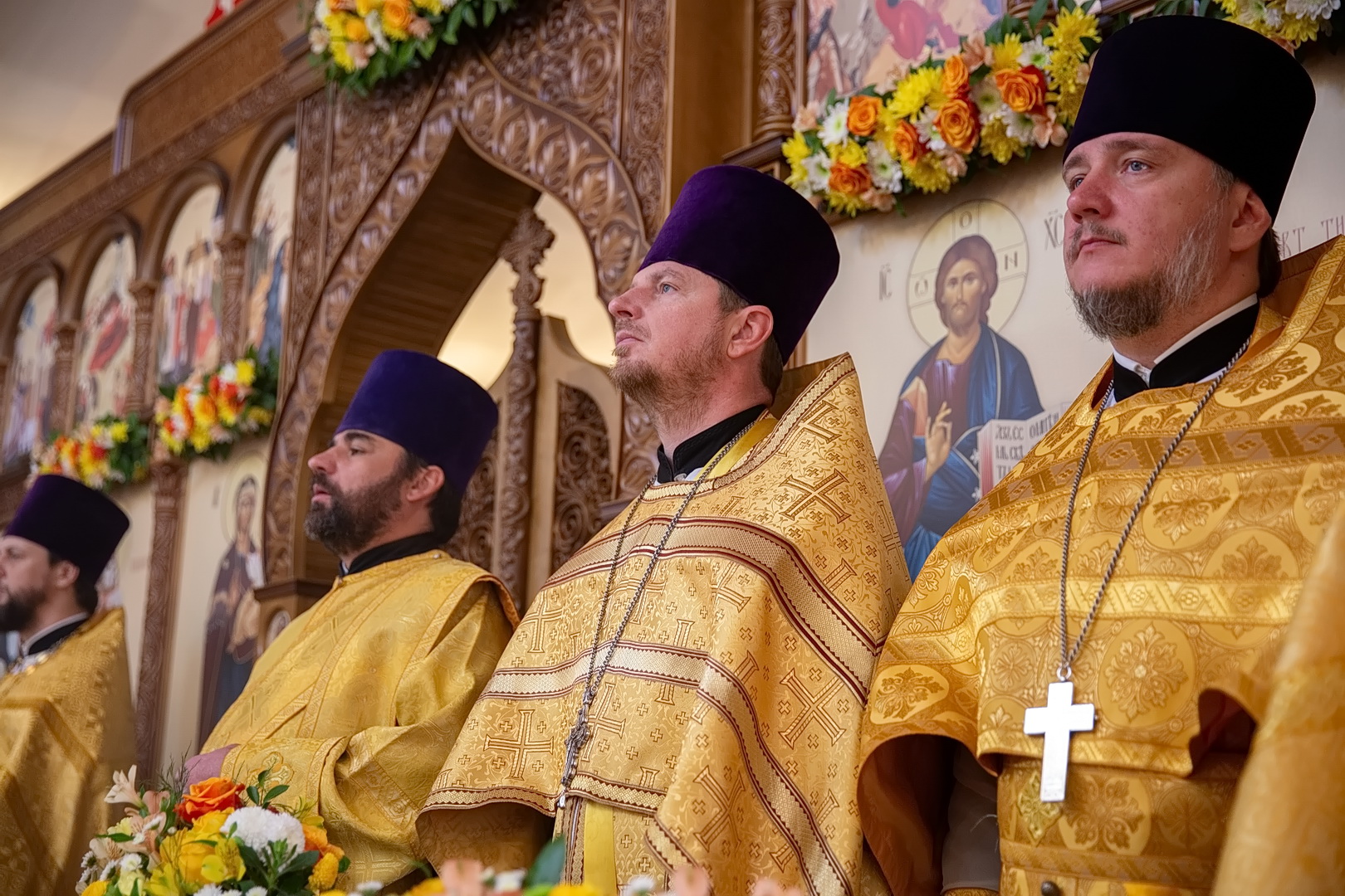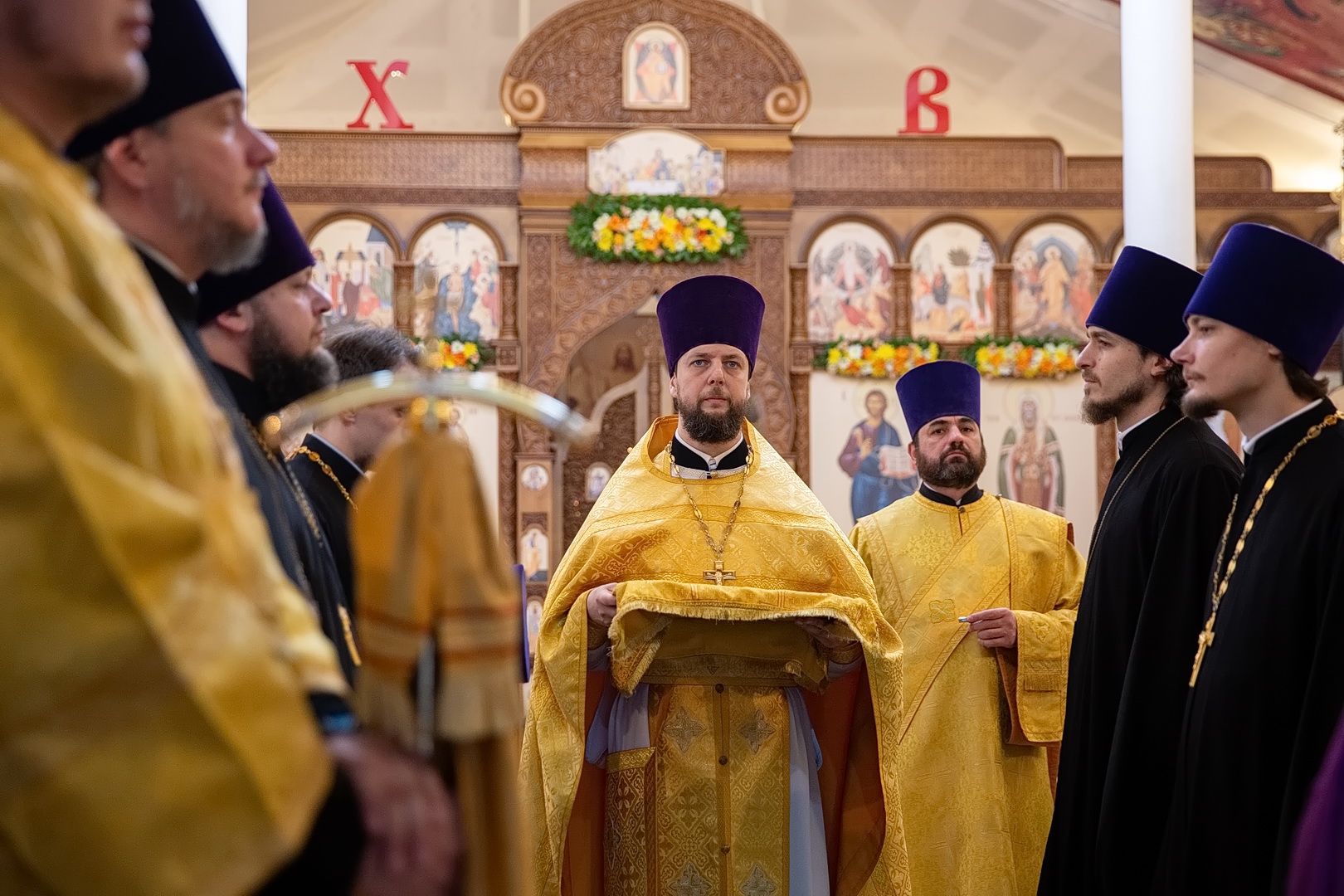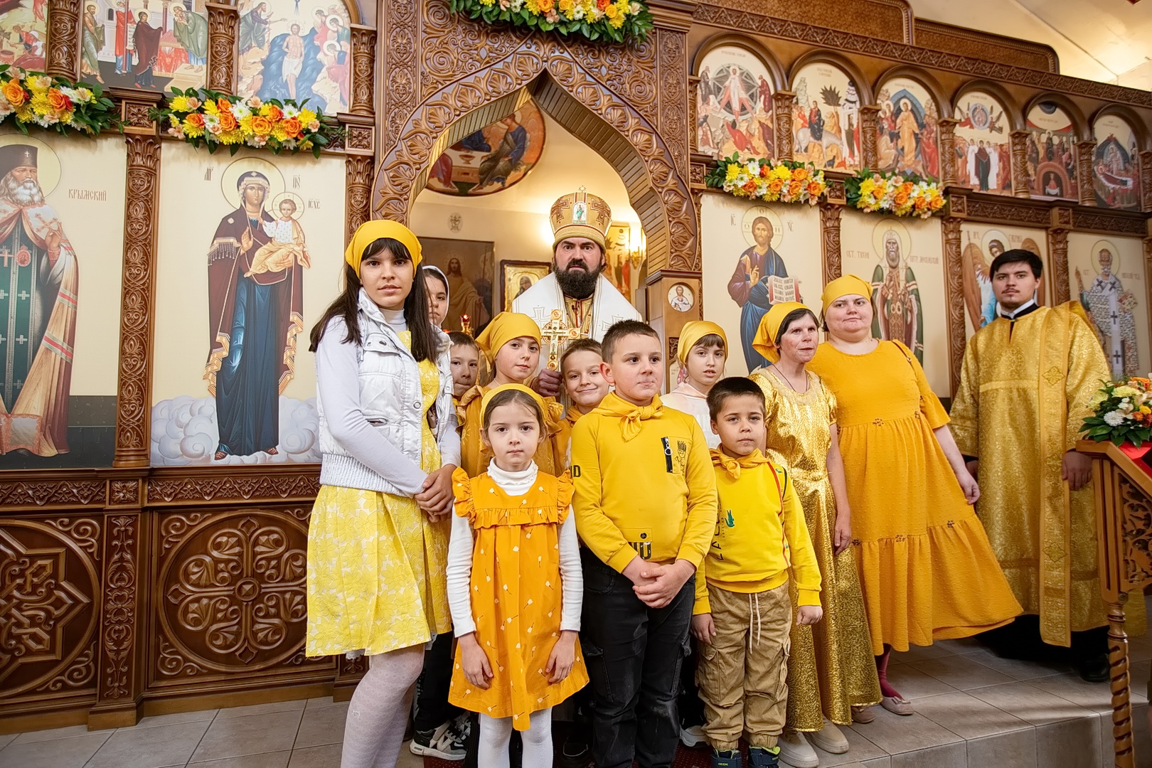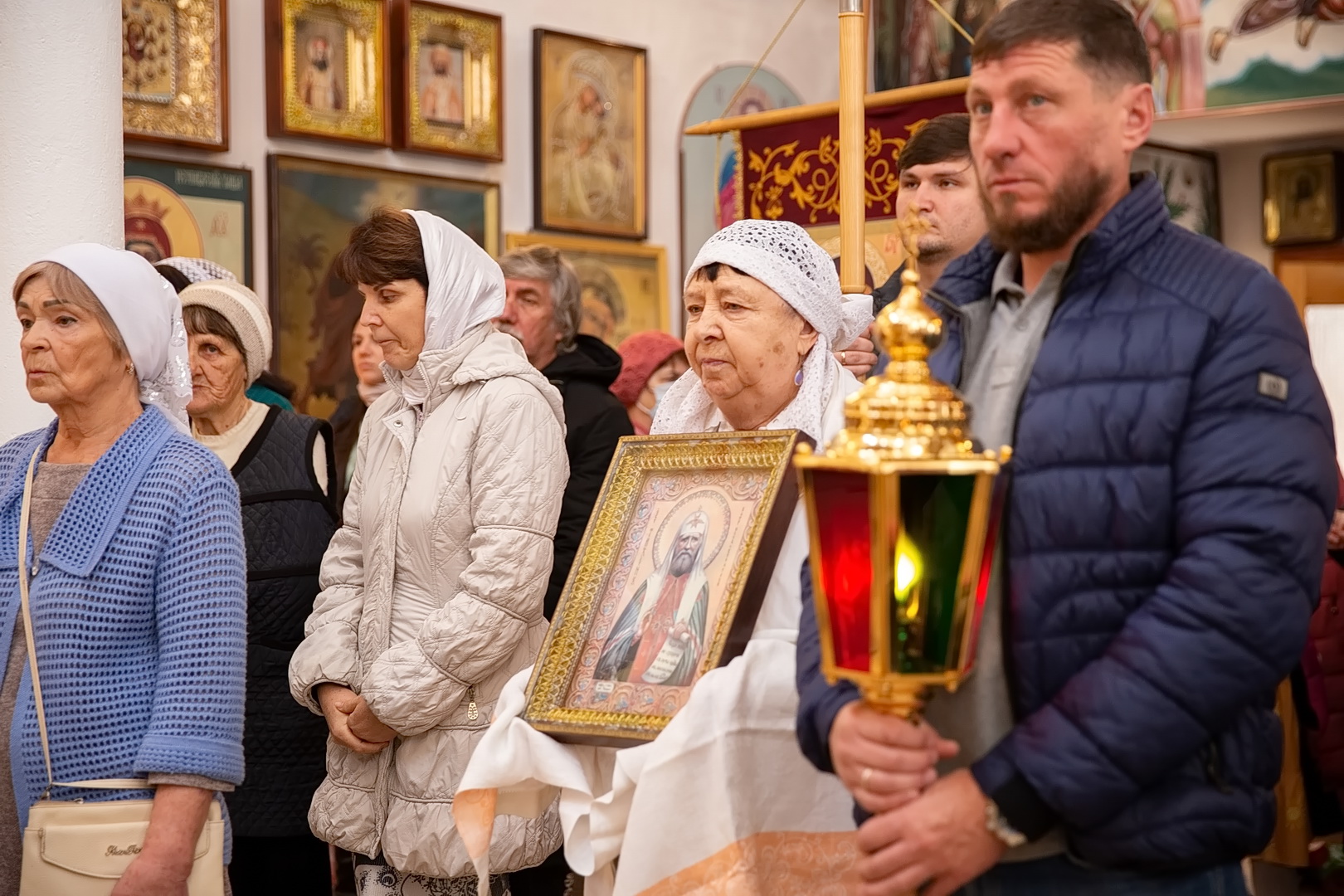 После литургии Владыка возглавил крестный ход, вручил благодарственное письмо благотворителю храма и обратился к верующим с проповедью. Затем с поздравлением перед участниками праздника выступили воспитанники приходской воскресной школы.