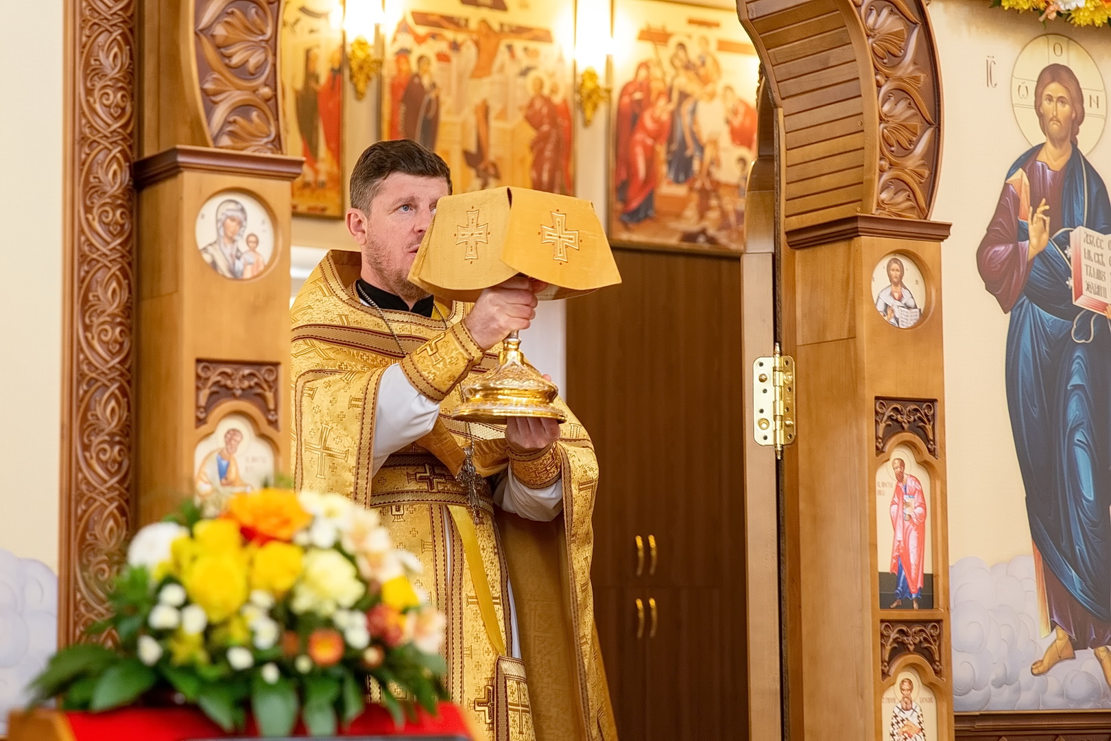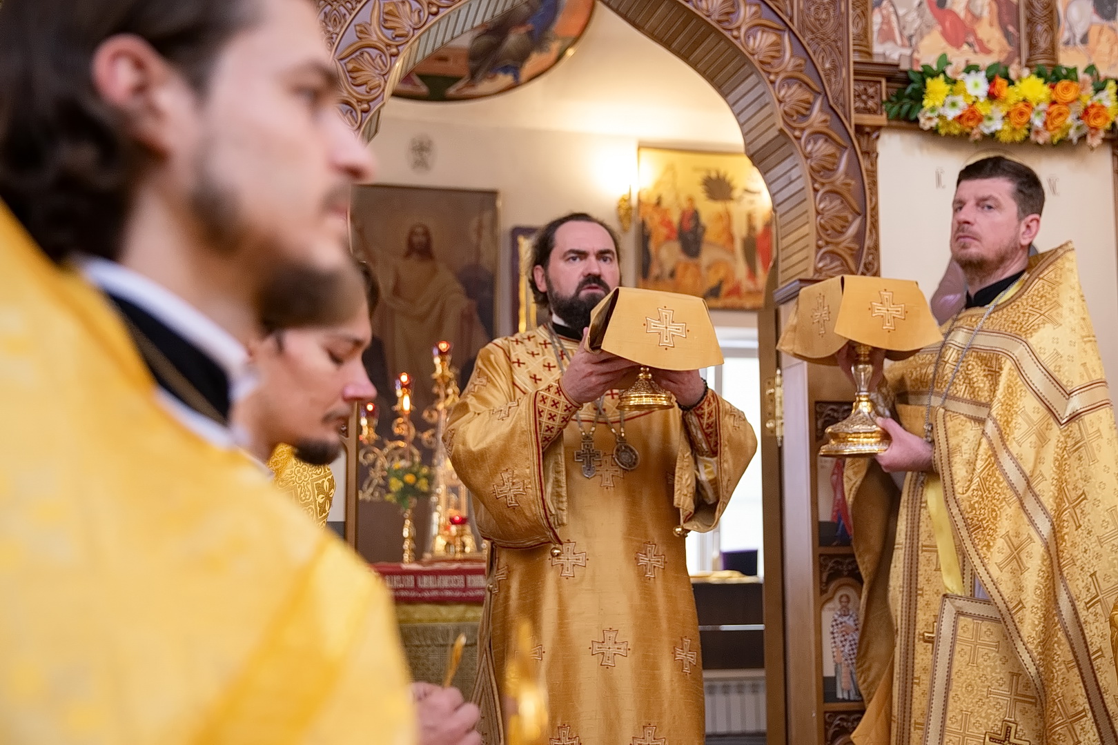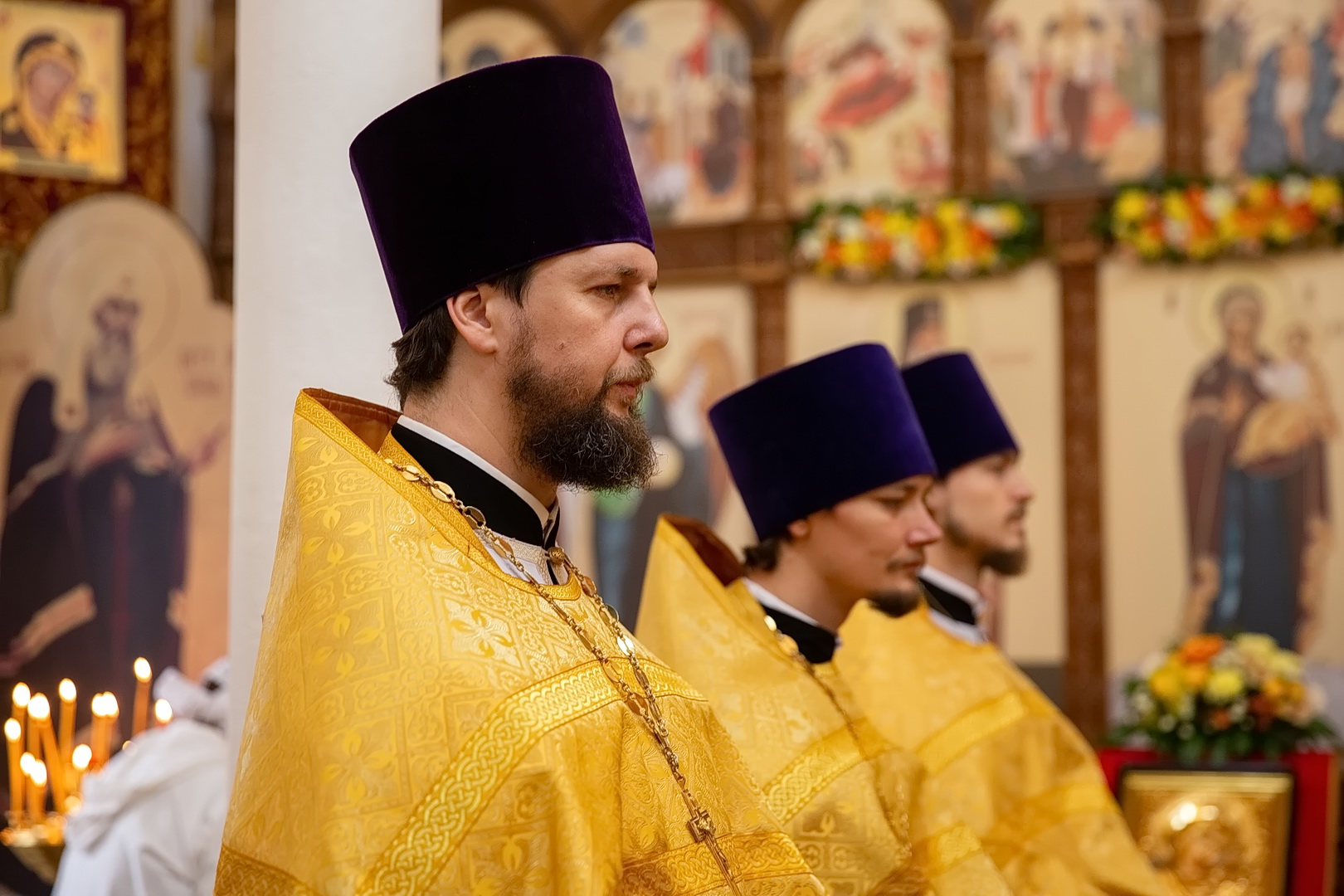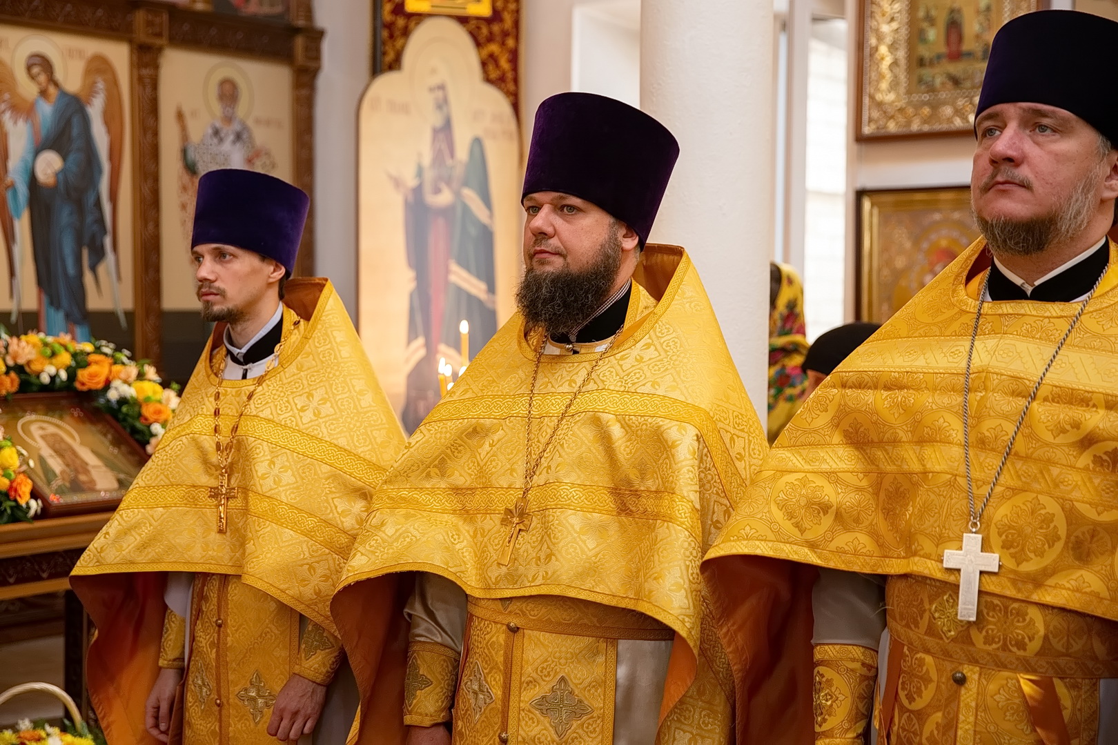 После литургии Владыка возглавил крестный ход, вручил благодарственное письмо благотворителю храма и обратился к верующим с проповедью. Затем с поздравлением перед участниками праздника выступили воспитанники приходской воскресной школы.