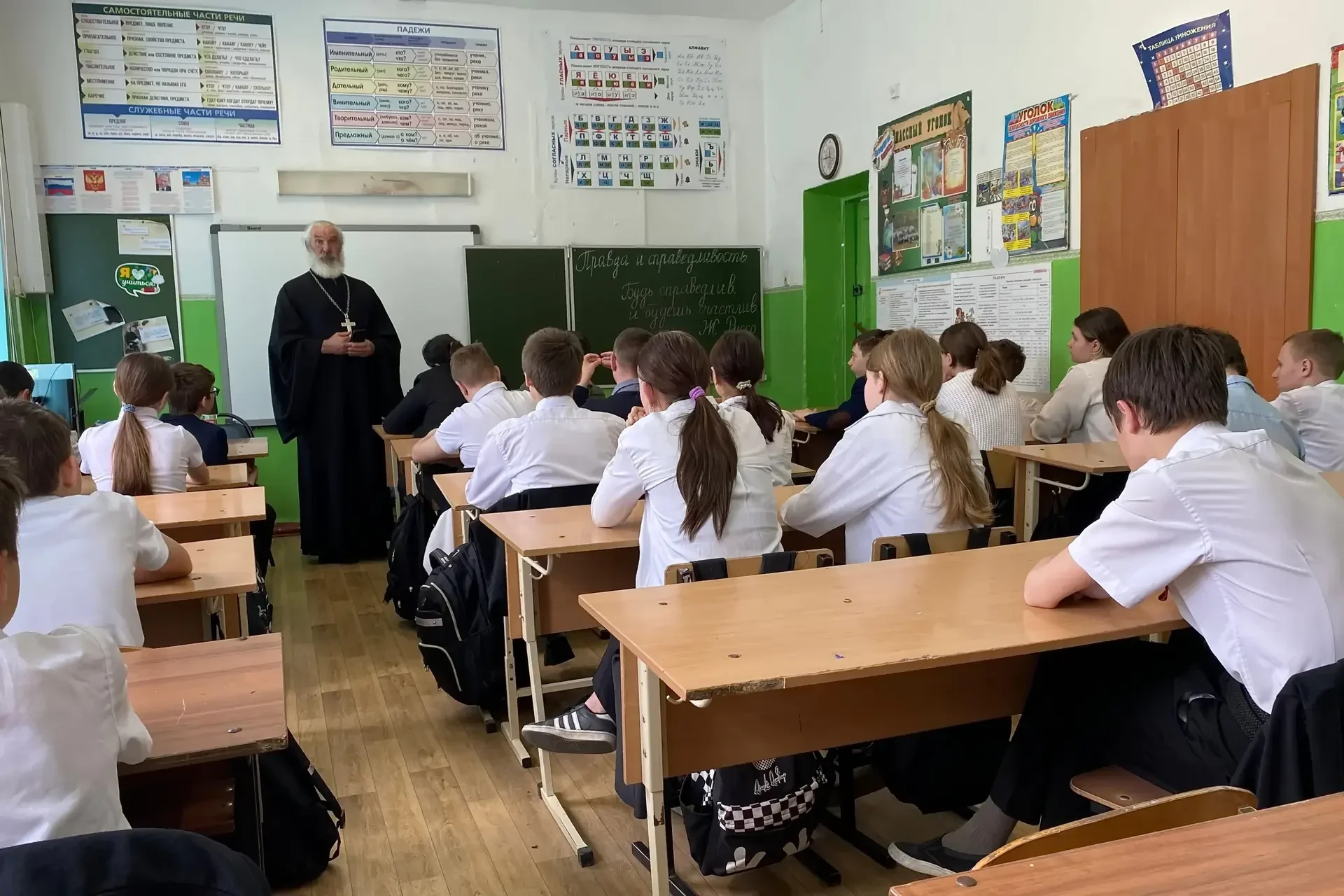 На пятой неделе Великого поста, настоятель храма иконы Божией Матери "Утоли мои печали" иерей Александр Переверзев посетил школу № 7 в поселке Капельница. Он поговорил с учениками о важности слов «правда» и «справедливость».